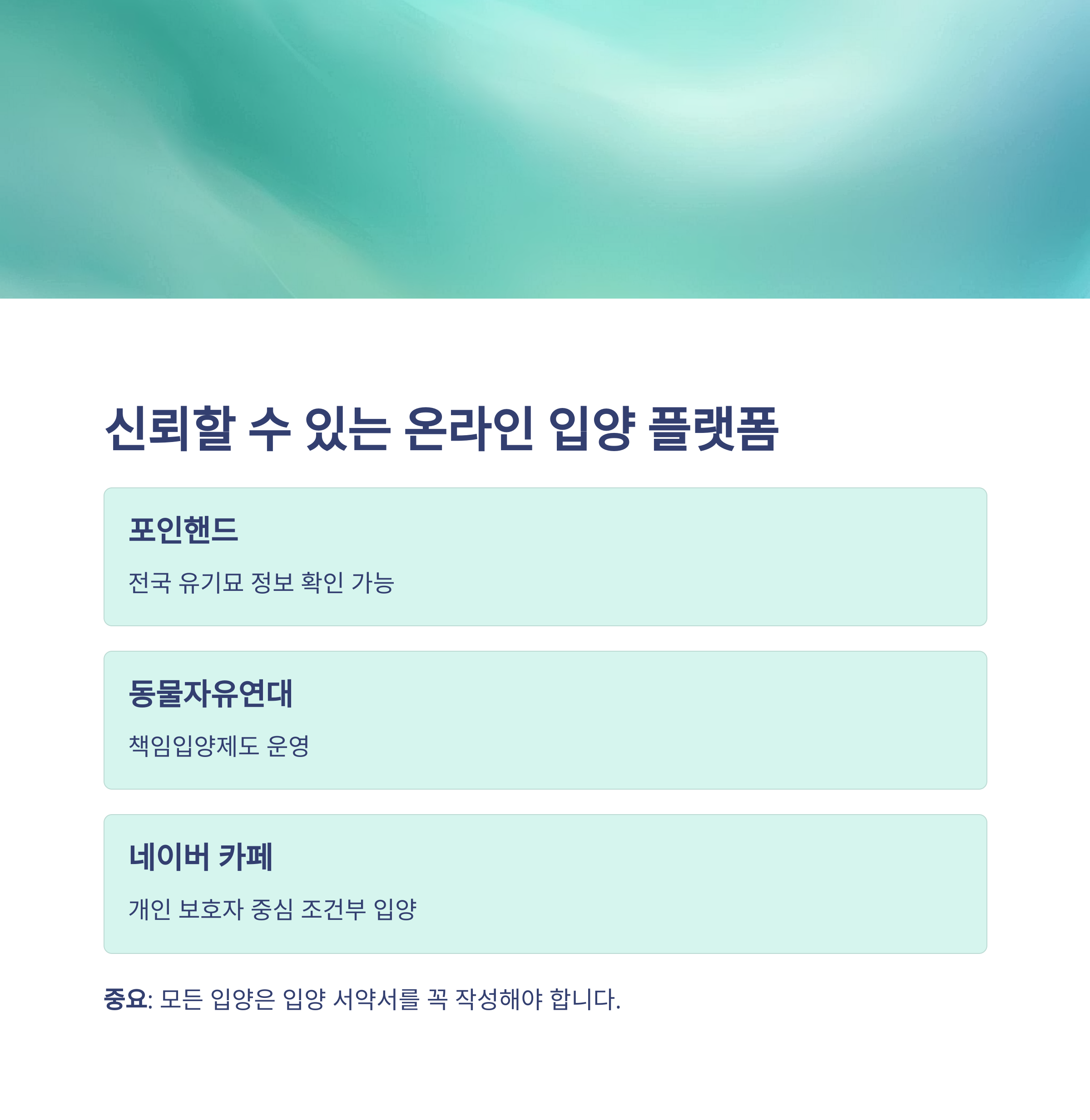 중요: 모든 입양은 보호자와 입양자의 상호 동의 하에 이뤄져야 하며, 입양 서약서를 꼭 작성해야 합니다.