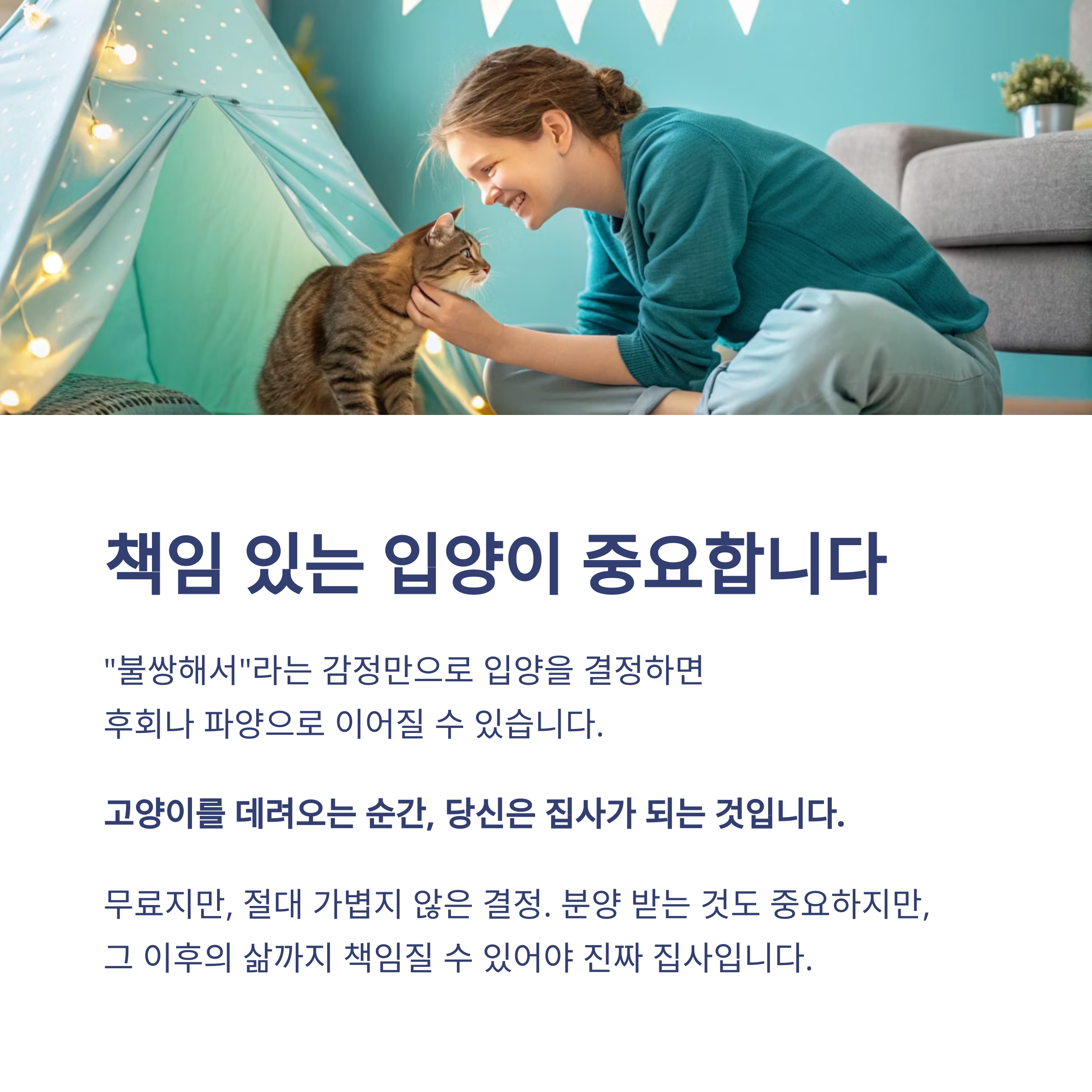 고양이를 데려오는 순간, 당신은 집사가 되는 것입니다.