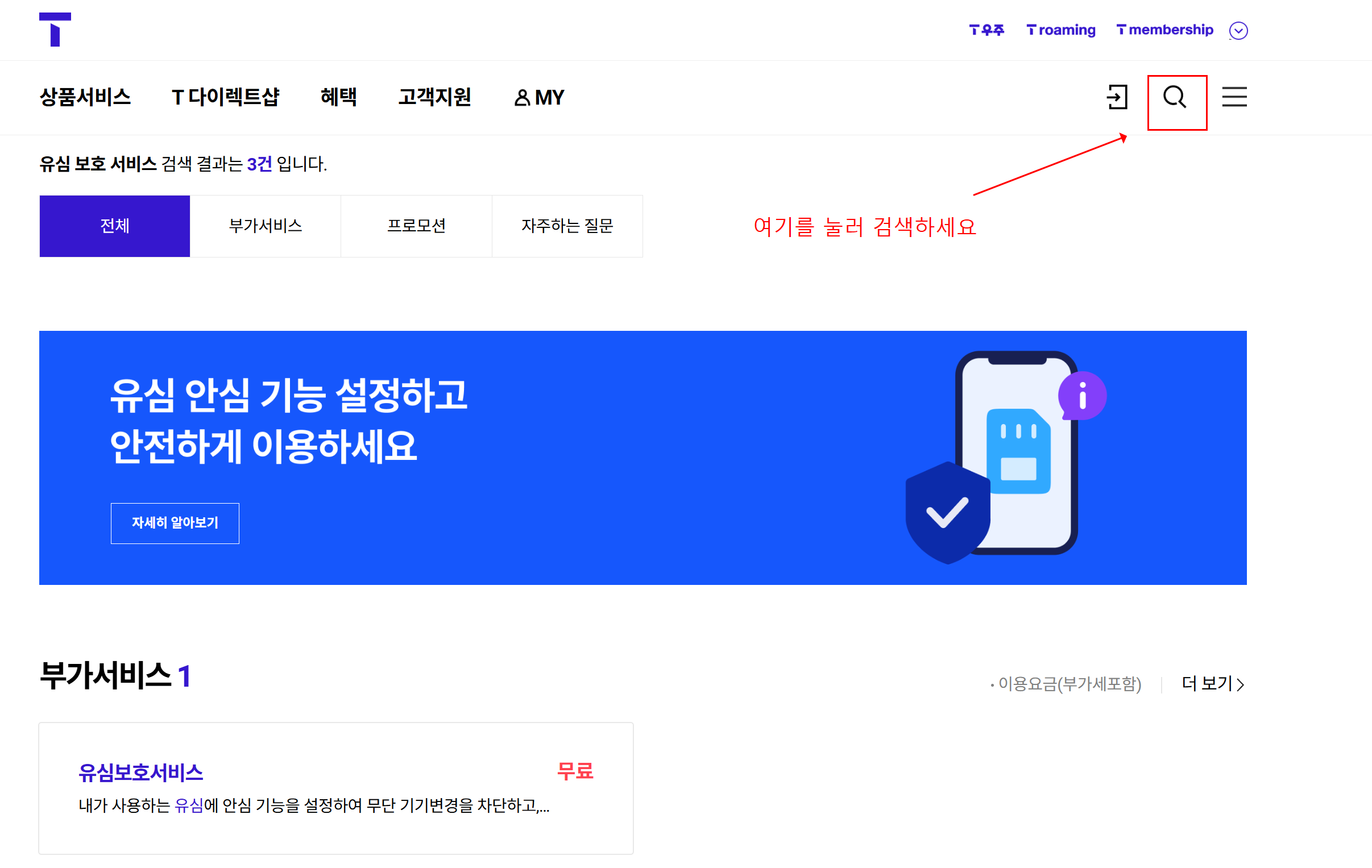 - T월드 로그인 → 검색창에 ‘유심 보호’ 입력