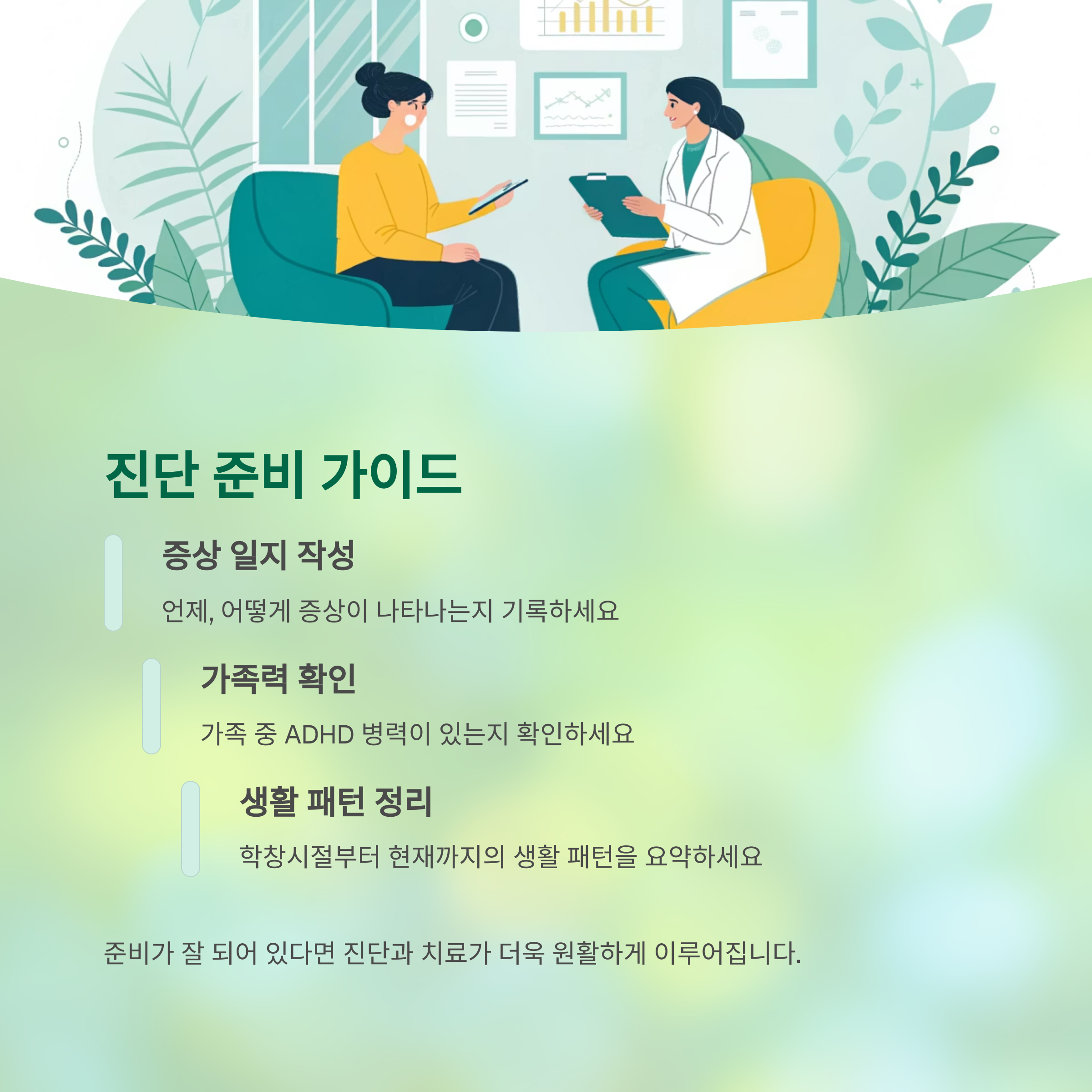 준비가 잘 되어 있다면 진단과 치료가 더욱 원활하게 이루어집니다.