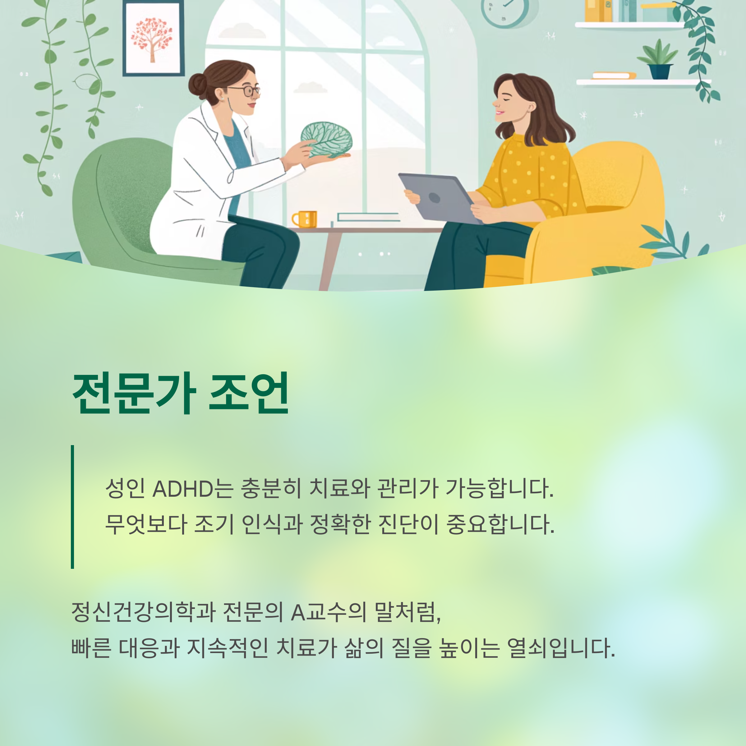 "성인 ADHD는 충분히 치료와 관리가 가능합니다.