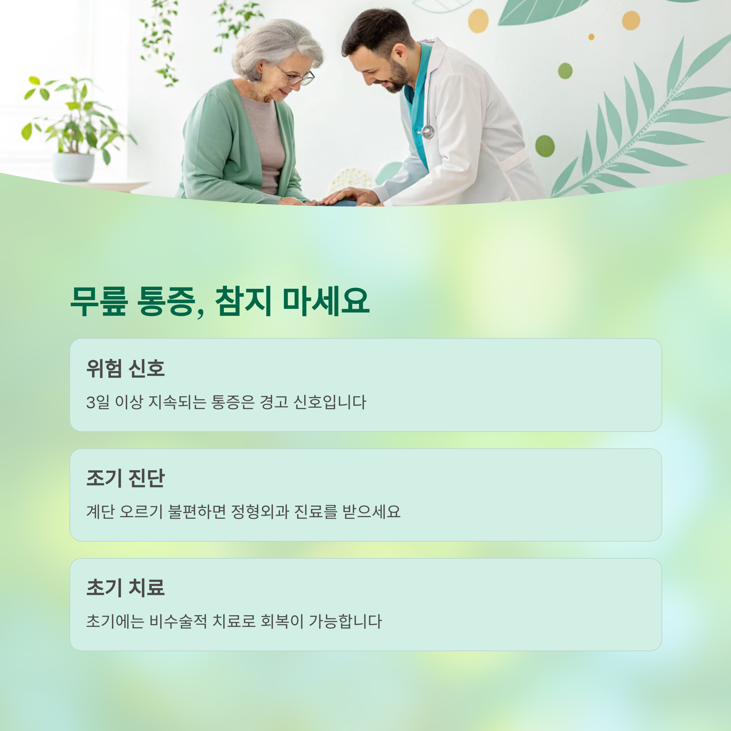 조기 대처가 장기적인 무릎 건강을 지키는 열쇠입니다
