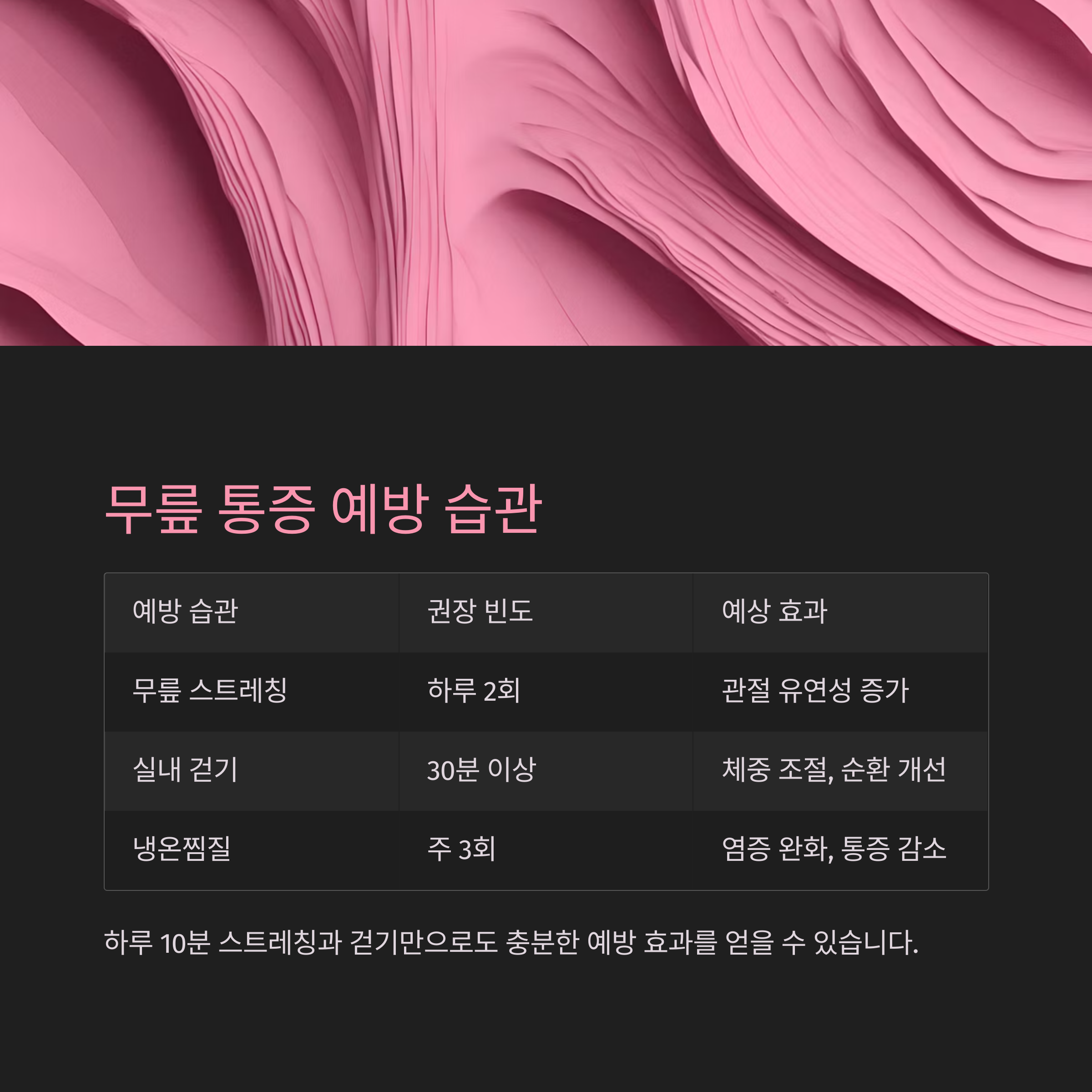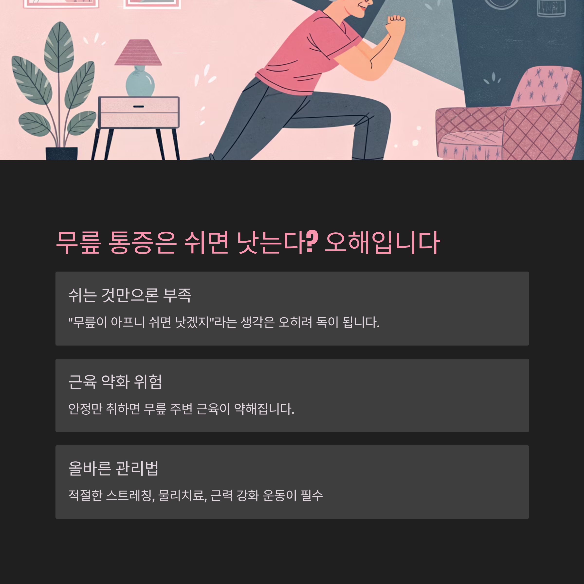 이러한 루틴을 유지하면 무릎 통증이 생기더라도 빠른 회복이 가능합니다