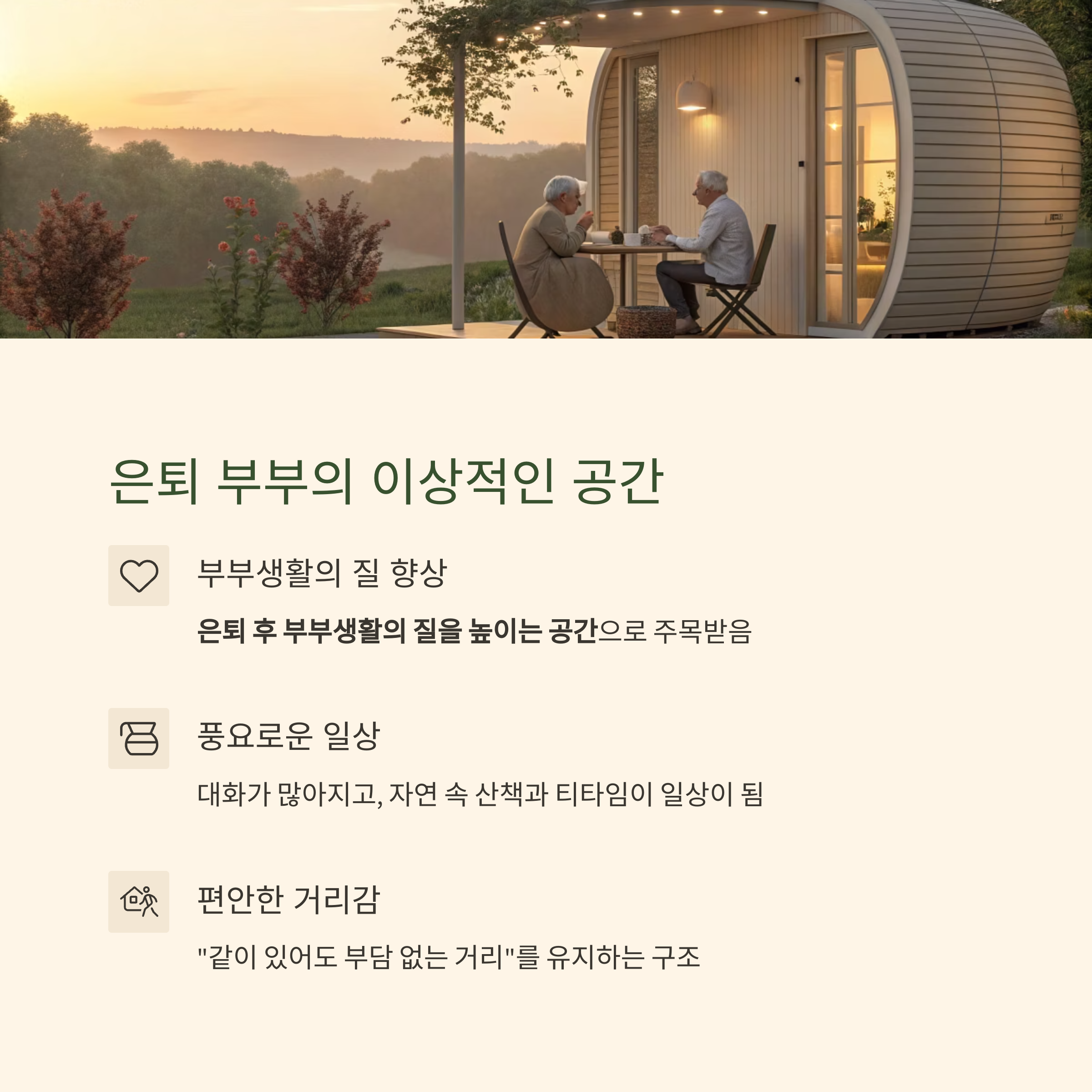 은퇴 후 부부생활의 질을 높이는 공간으로도 주목받고 있습니다.