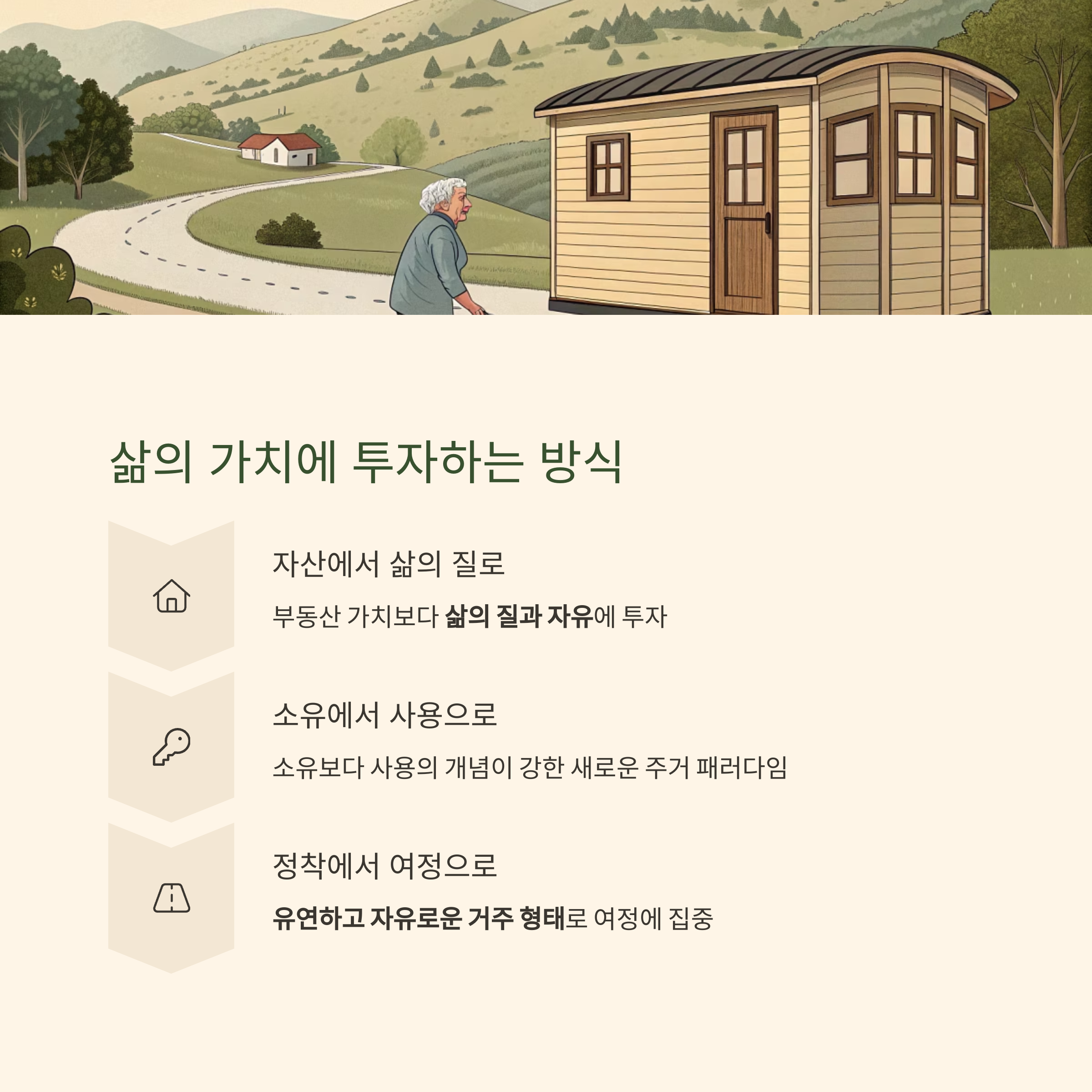 현대인들은 은퇴 후 더 넓은 집이 아닌, 더 자유로운 삶의 방식을 찾고 있습니다.