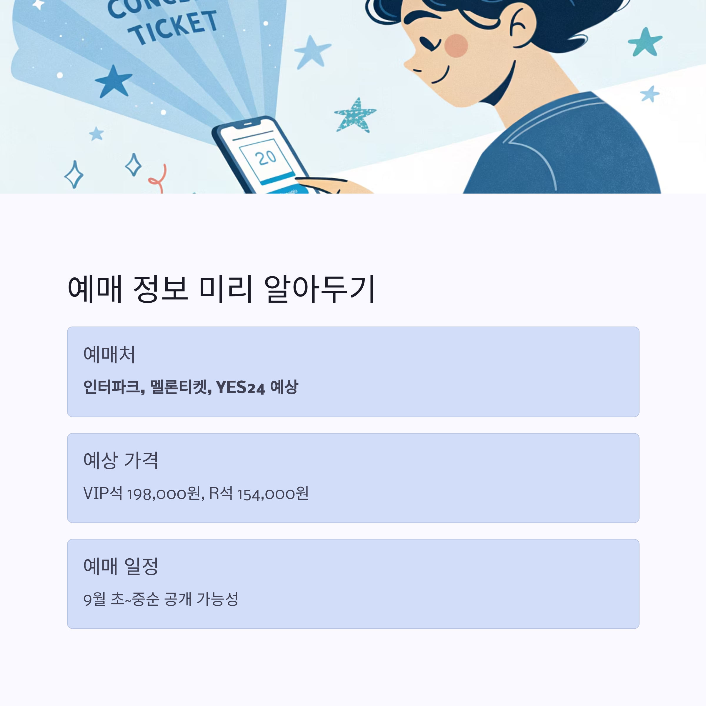 예매 일정은 9월 초~중순 공개될 가능성이 있으며, 빠른 정보 확보가 핵심입니다.