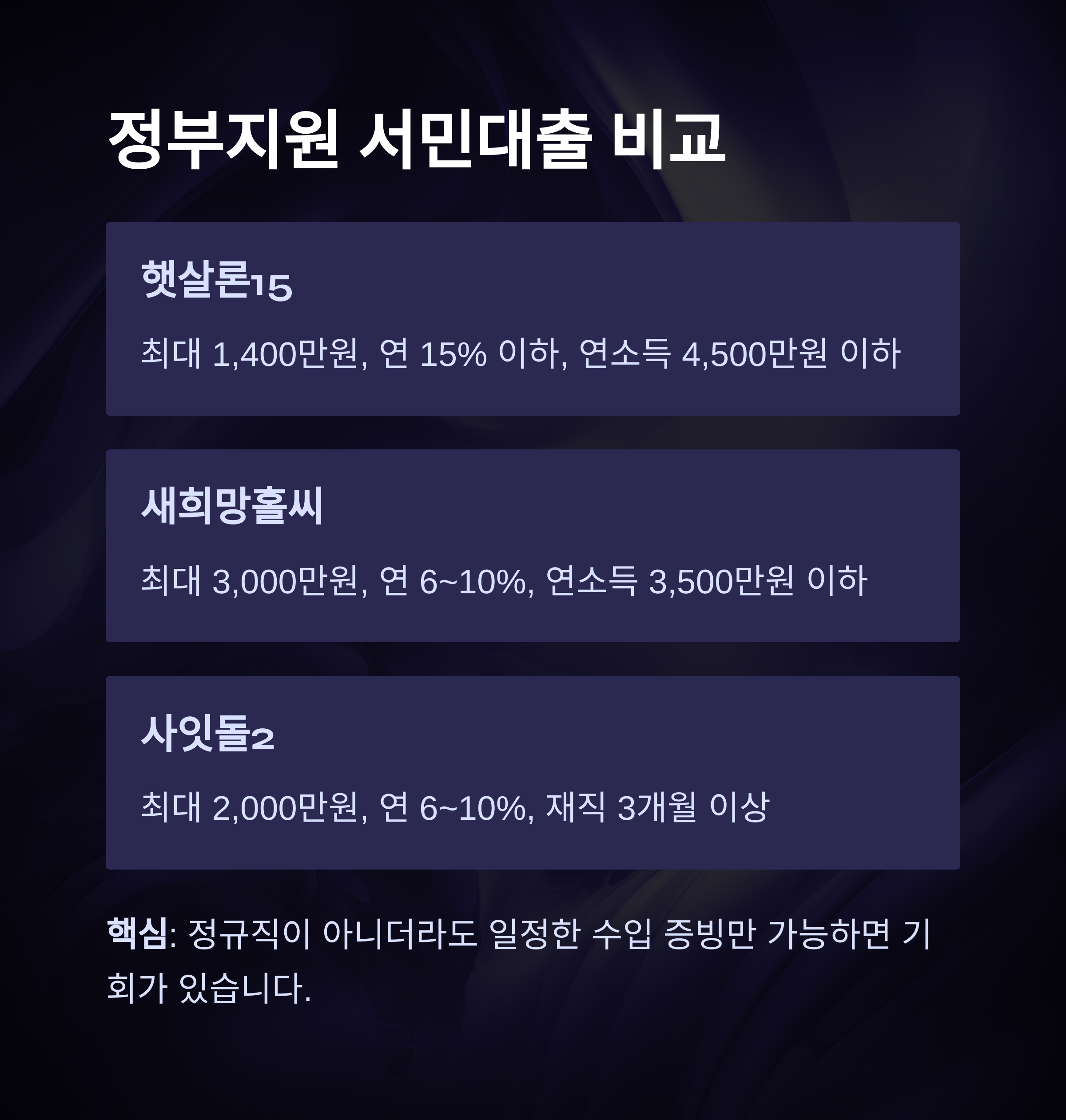 핵심: 정규직이 아니더라도, 일정한 수입 증빙만 가능하면 가능성이 열려 있습니다.