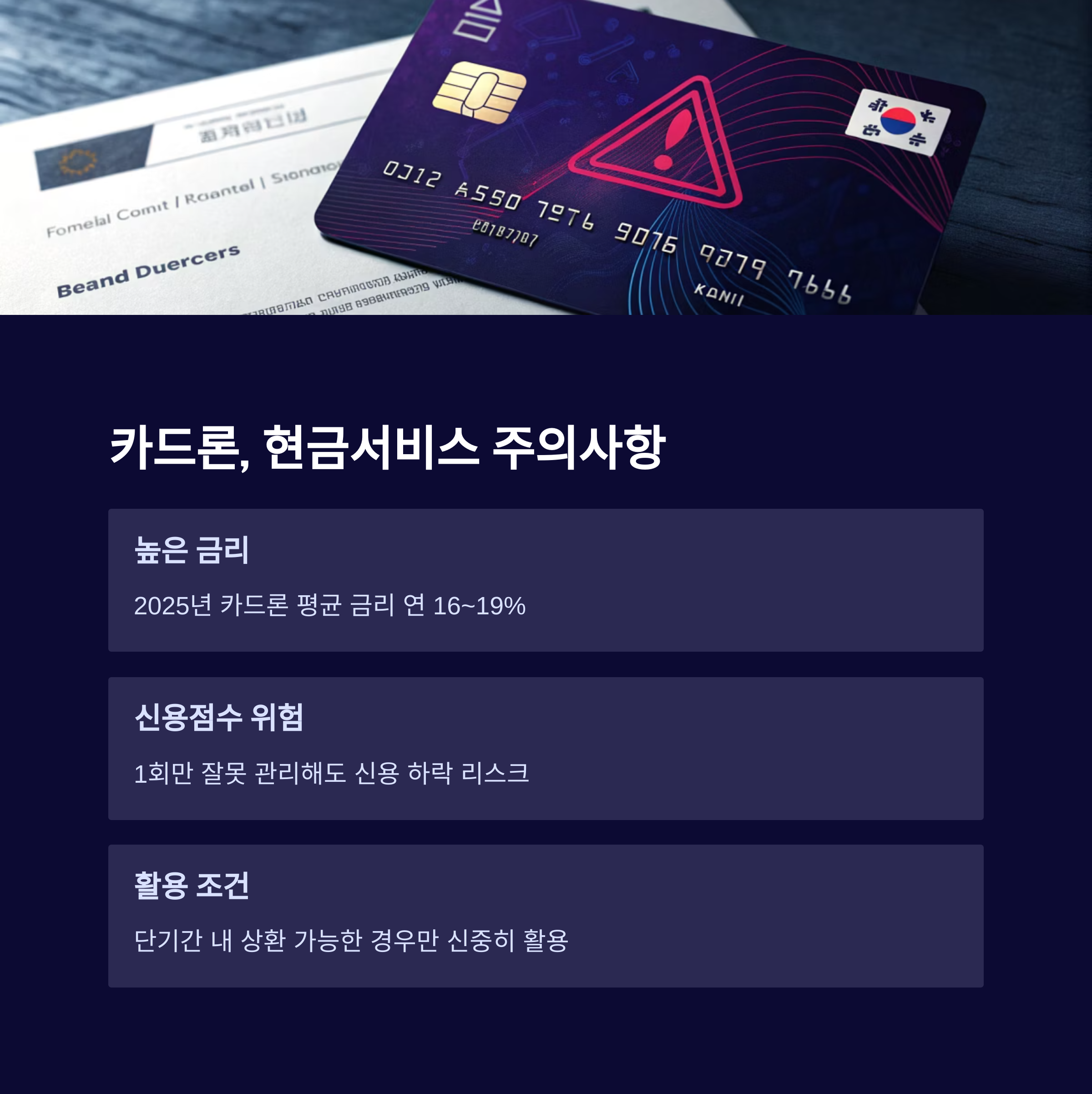 긴급 상황에서는 유용하지만, 금리가 매우 높고 신용점수 하락 가능성이 큽니다.