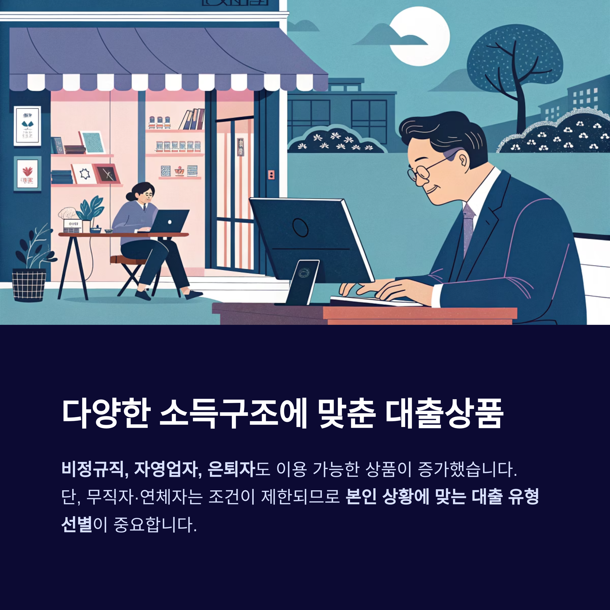 "자영업자, 프리랜서, 은퇴자에게 가장 현실적인 대출 유형"으로