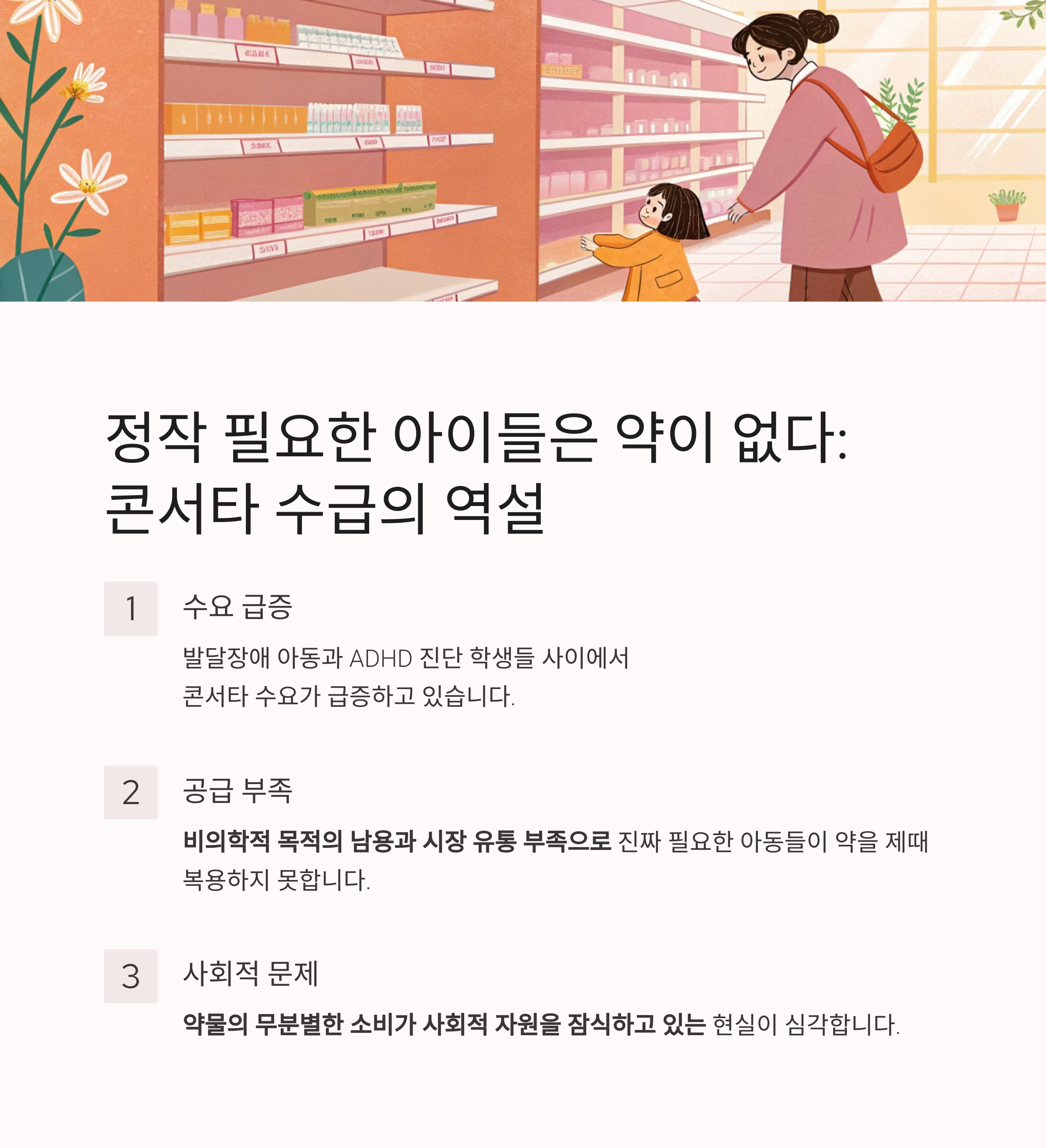 정작 필요한 아이들은 약이 없다: 콘서타 수급의 역설