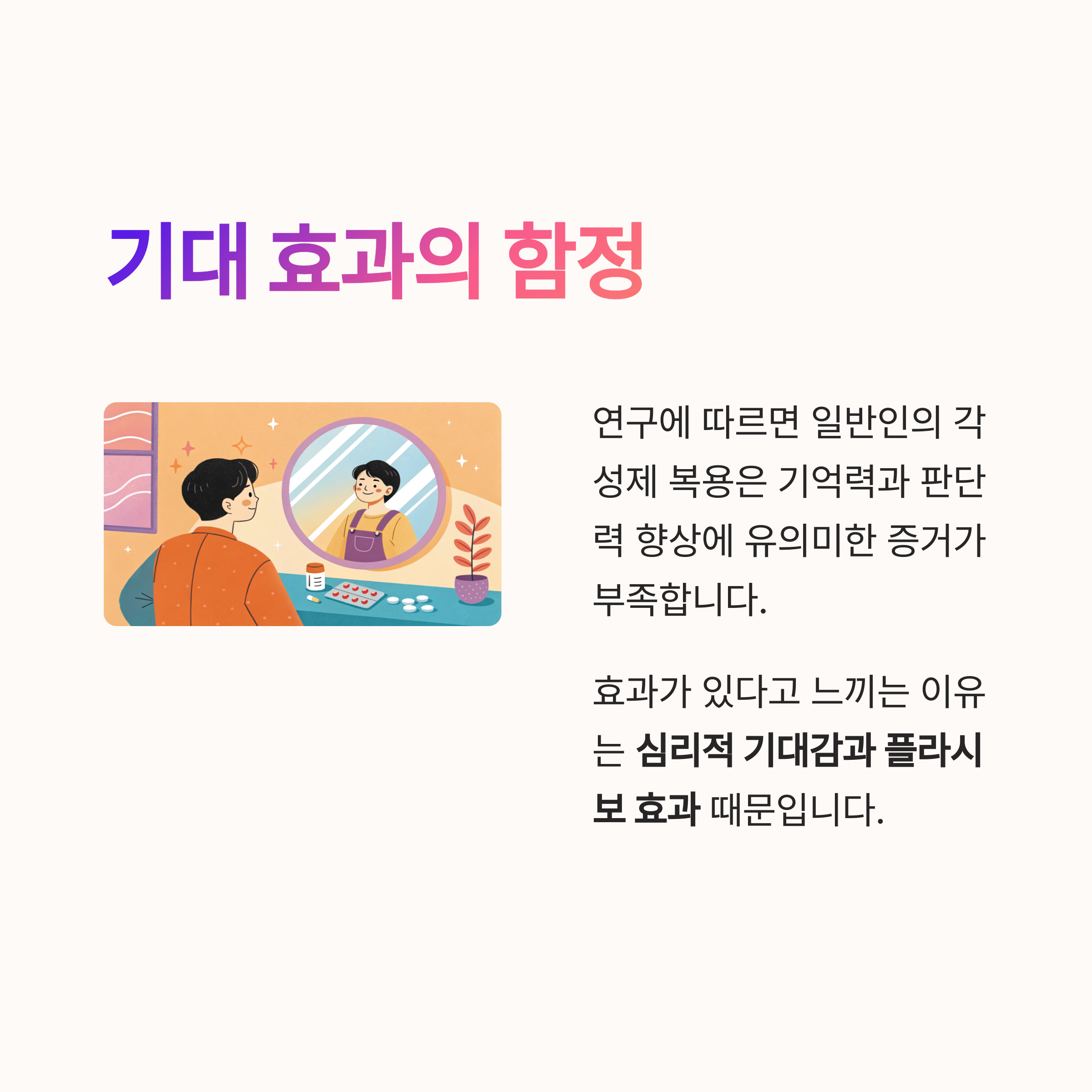 잠깐의 집중력 향상이 지능 향상으로 착각될 수 있으나,