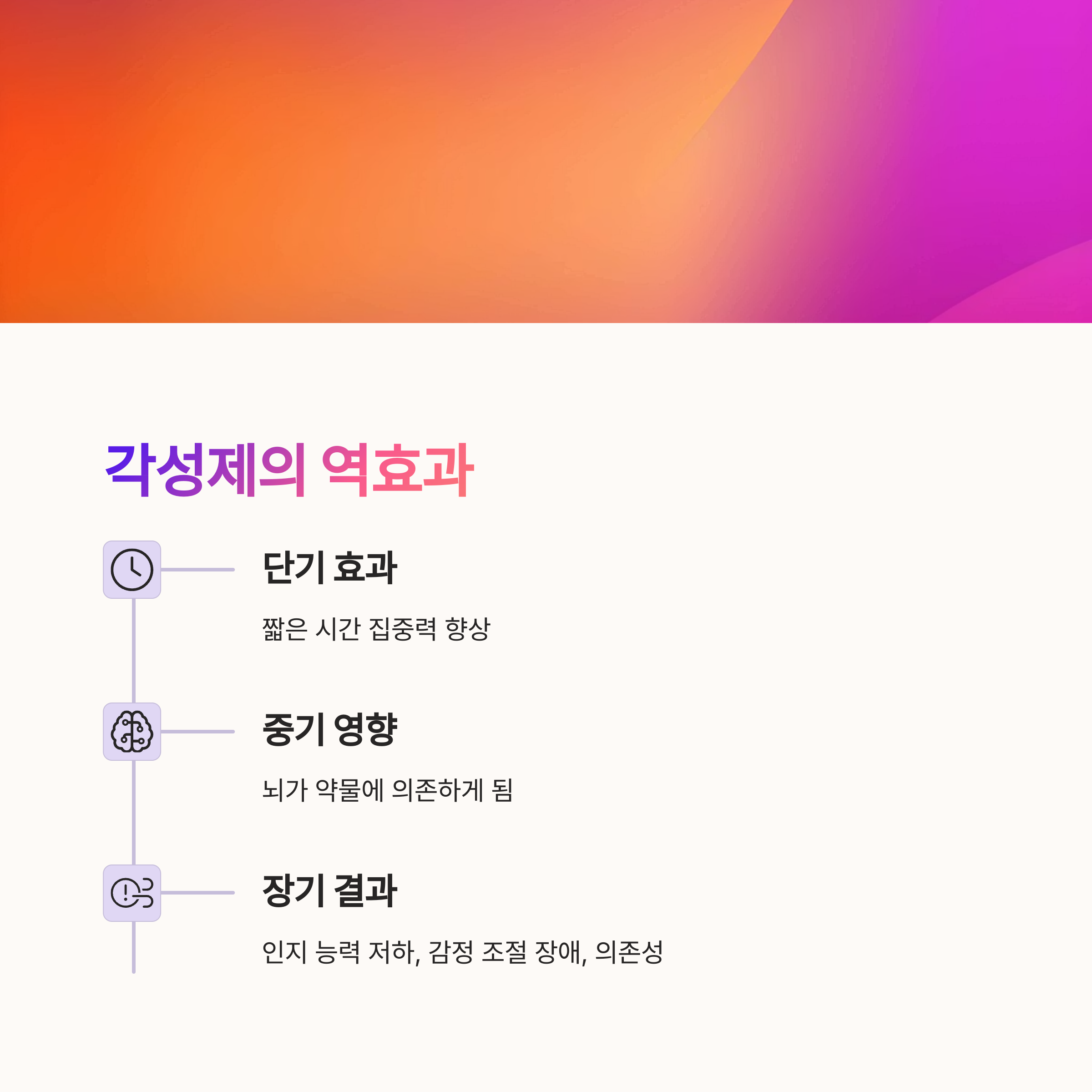 | 집중력 일시 향상 | 인지 저하 및 감정 불안정 |