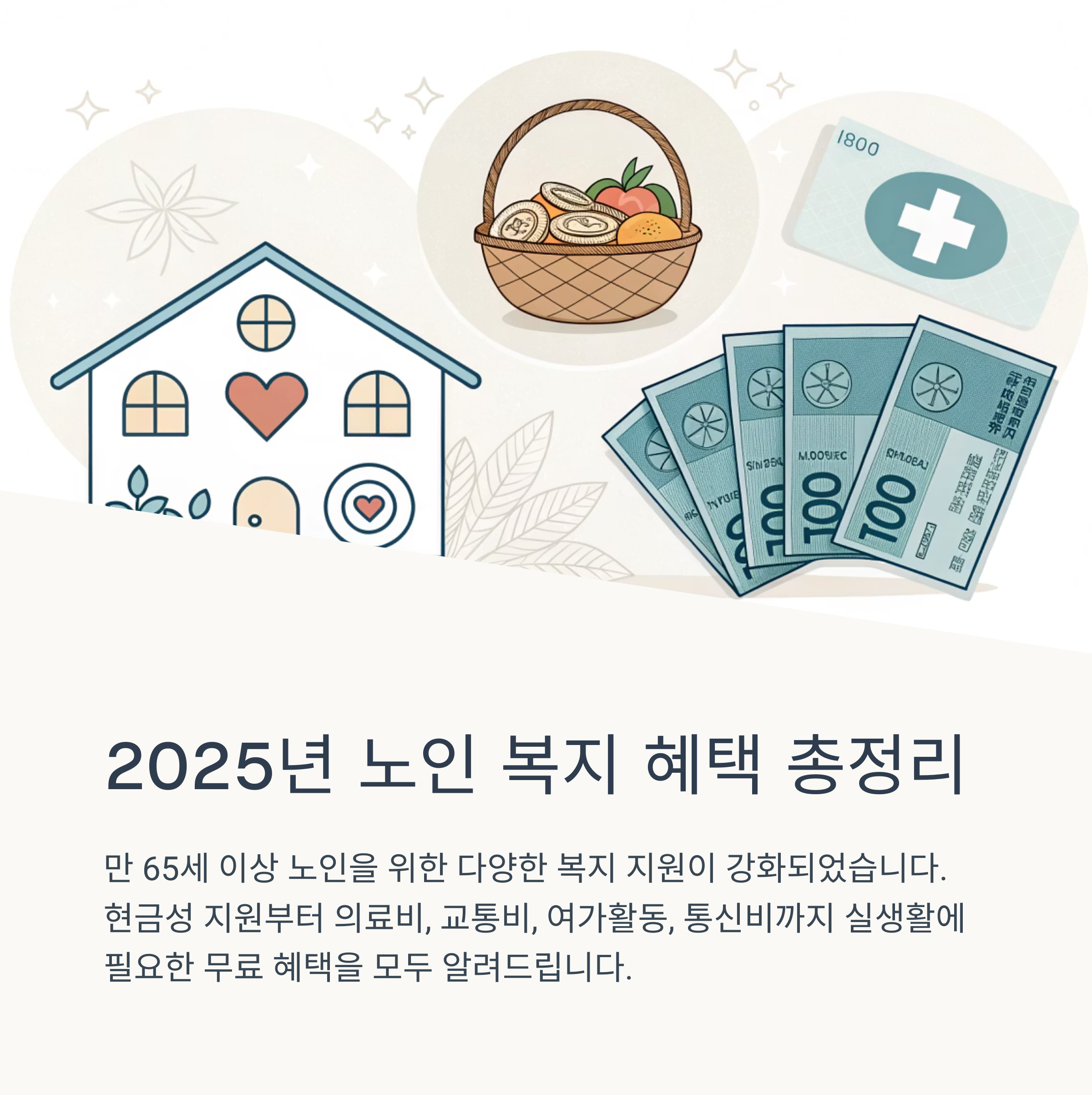 2025년 기준으로 만 65세 이상 노인을 대상으로 다양한 복지 지원이 제공되고 있습니다.