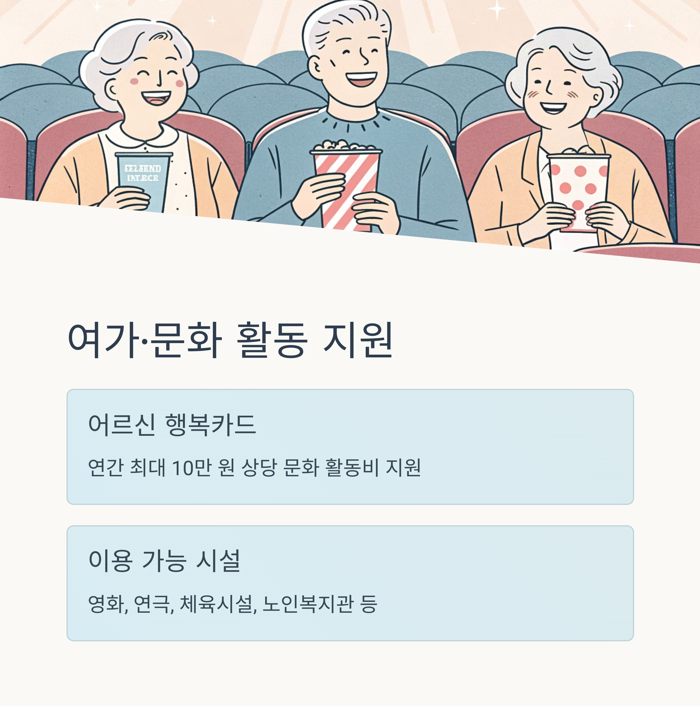 지자체 및 복지재단에서 어르신 문화관람, 영화티켓, 스포츠센터 이용권 등을