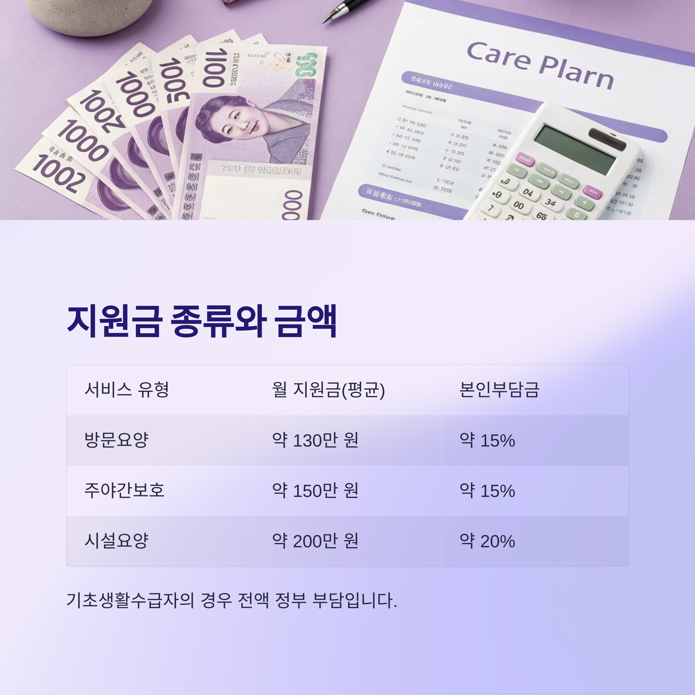 이외에도 요양보호사 파견, 보조기기 대여, 주거환경 개선 비용 등 다양한 추가 지원이 제공됩니다