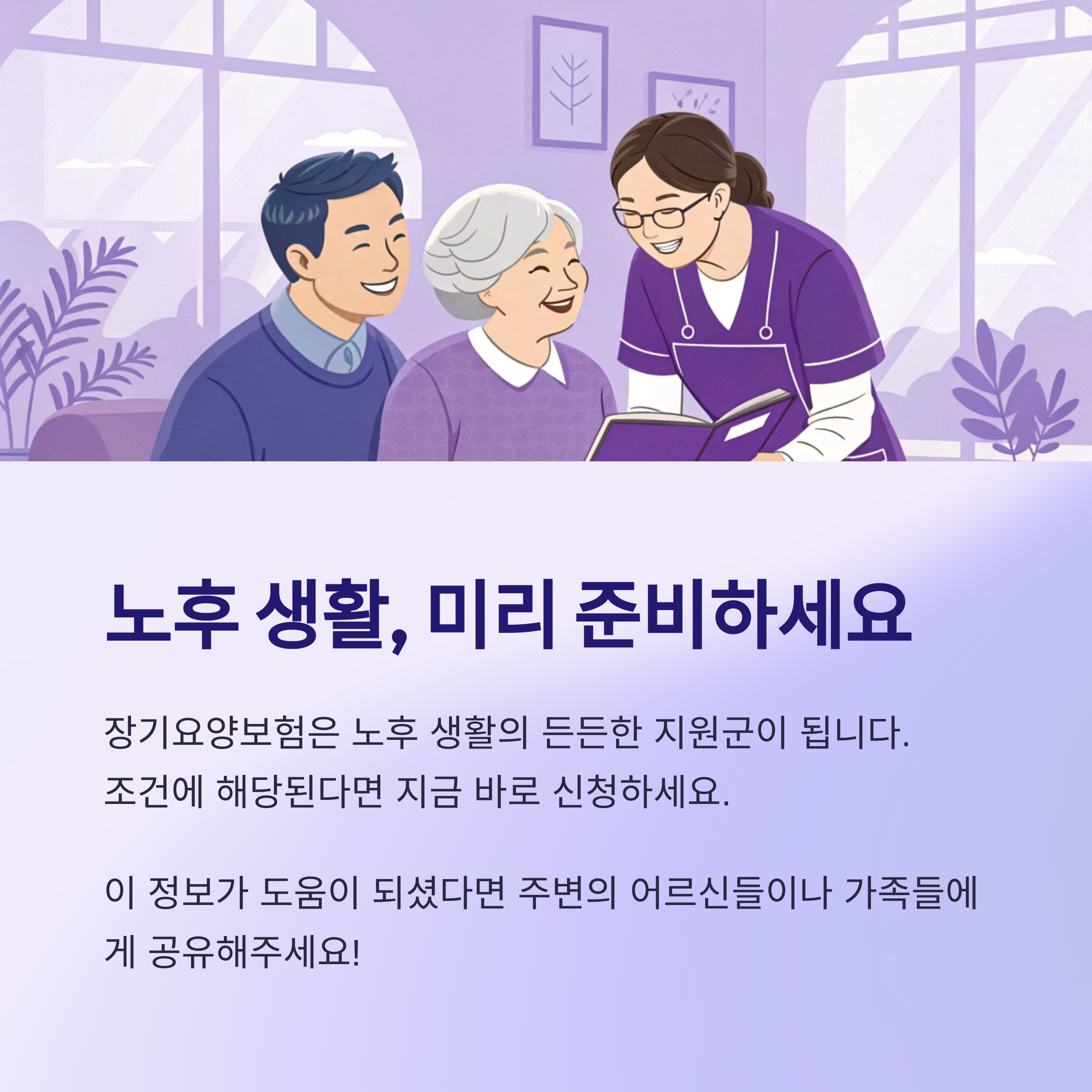 장기요양보험의 가장 기본적인 조건은 나이와 건강상태입니다