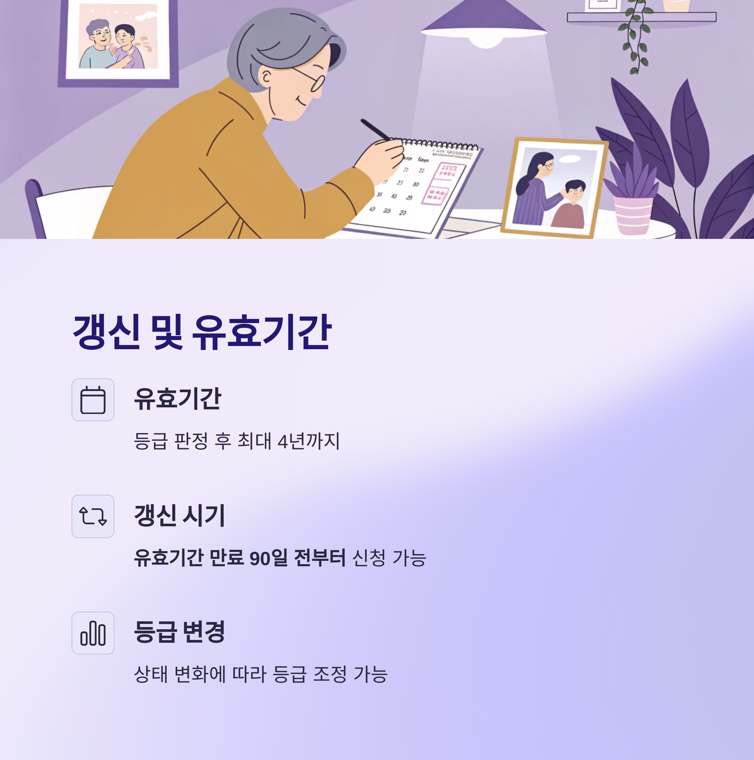 장기요양등급은 유효기간이 있으며, 만료 전에 갱신 심사를 받아야 합니다