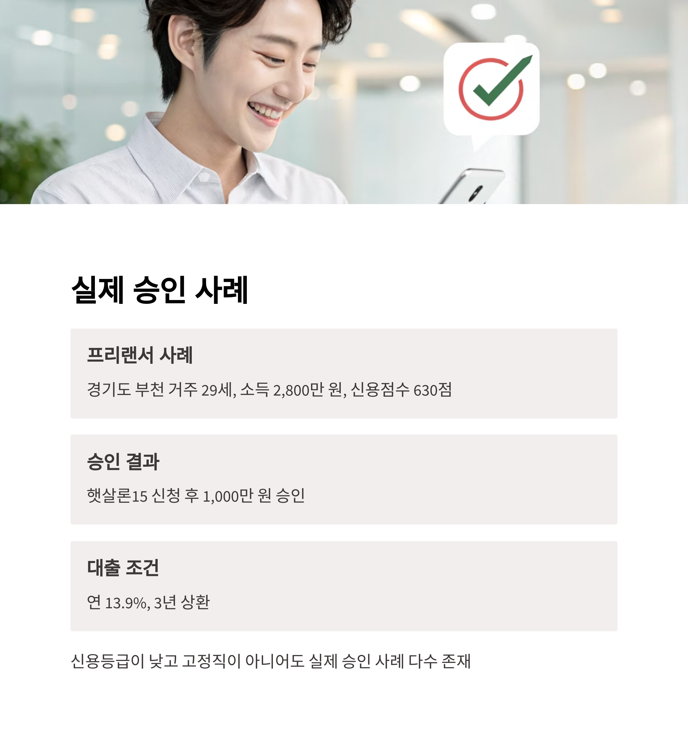 이처럼 신용등급이 낮고 고정직이 아니어도 실제 승인 사례 다수 존재