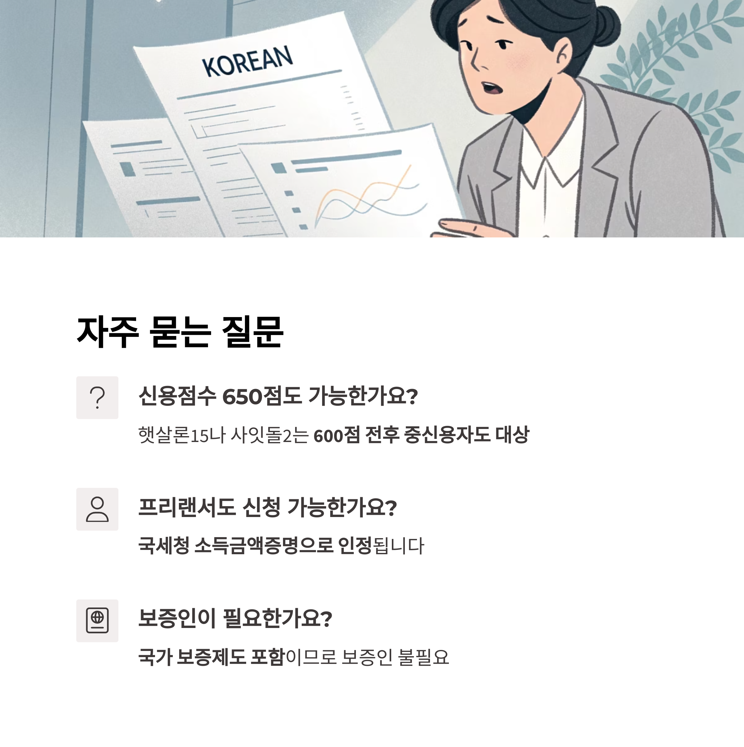 → 대부분 상품은 국가 보증제도 포함이므로 보증인 불필요