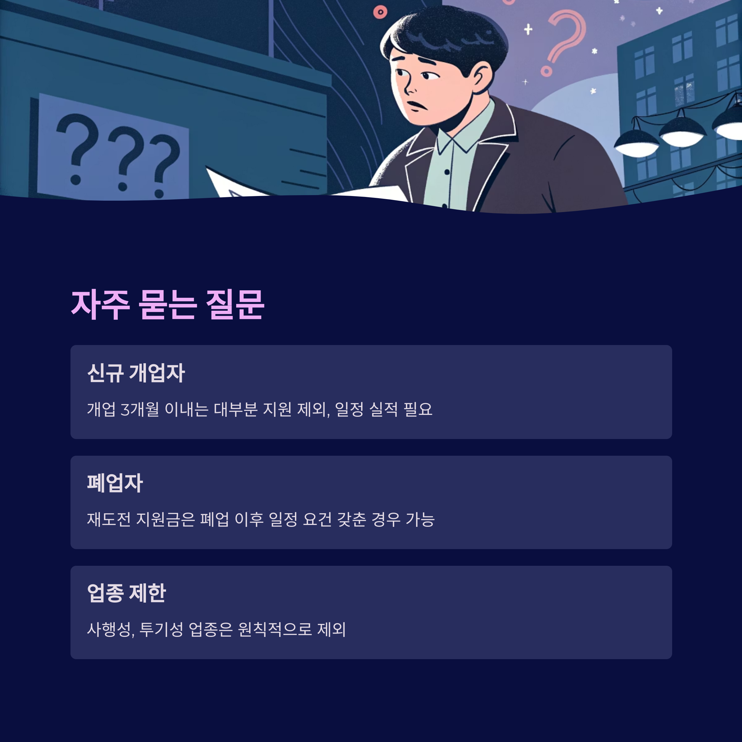 → 재도전 지원금은 폐업 이후 일정 요건을 갖춘 경우 신청 가능합니다