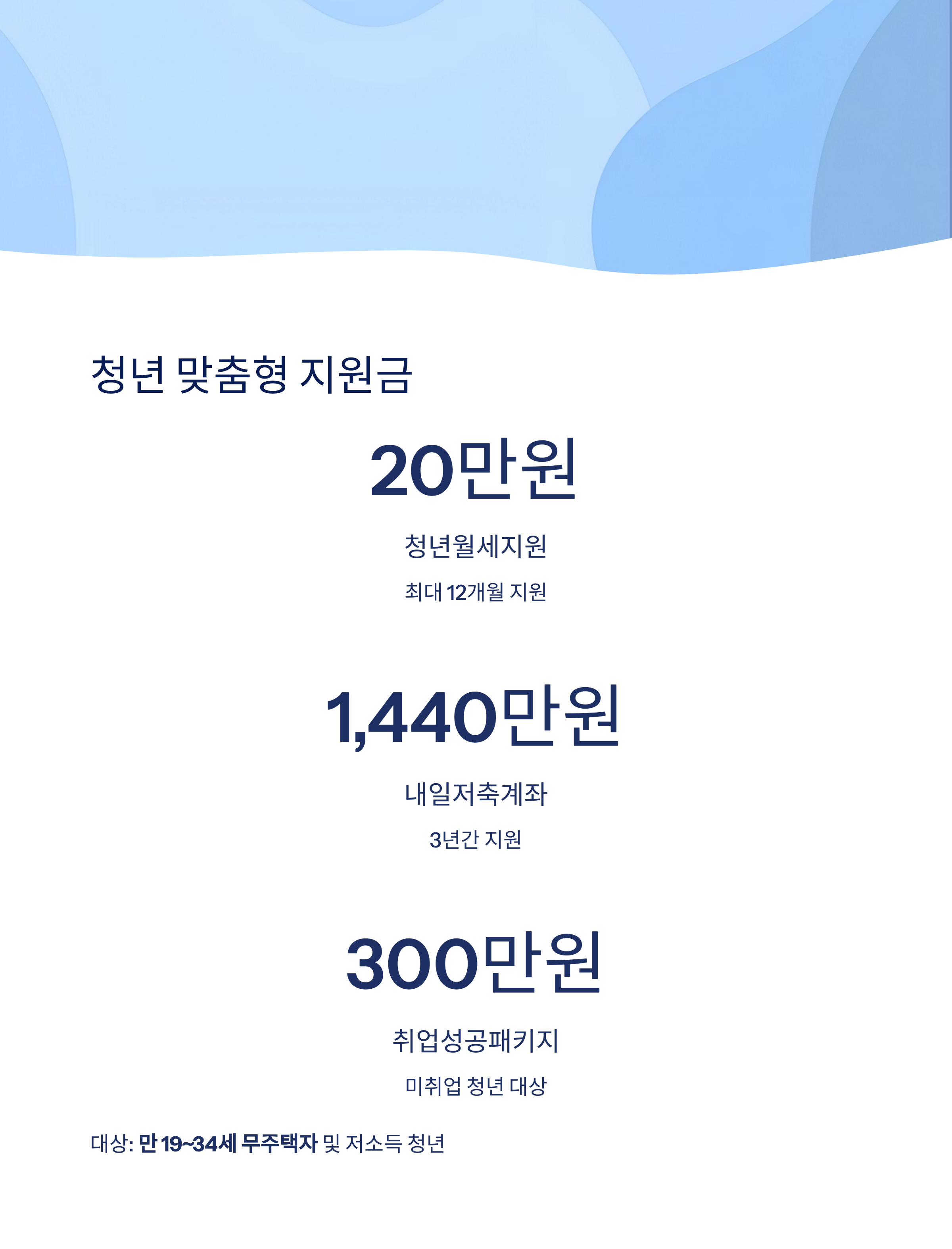 | 청년월세지원 | 만 19~34세 무주택자 | 월 20만원 × 12개월 |