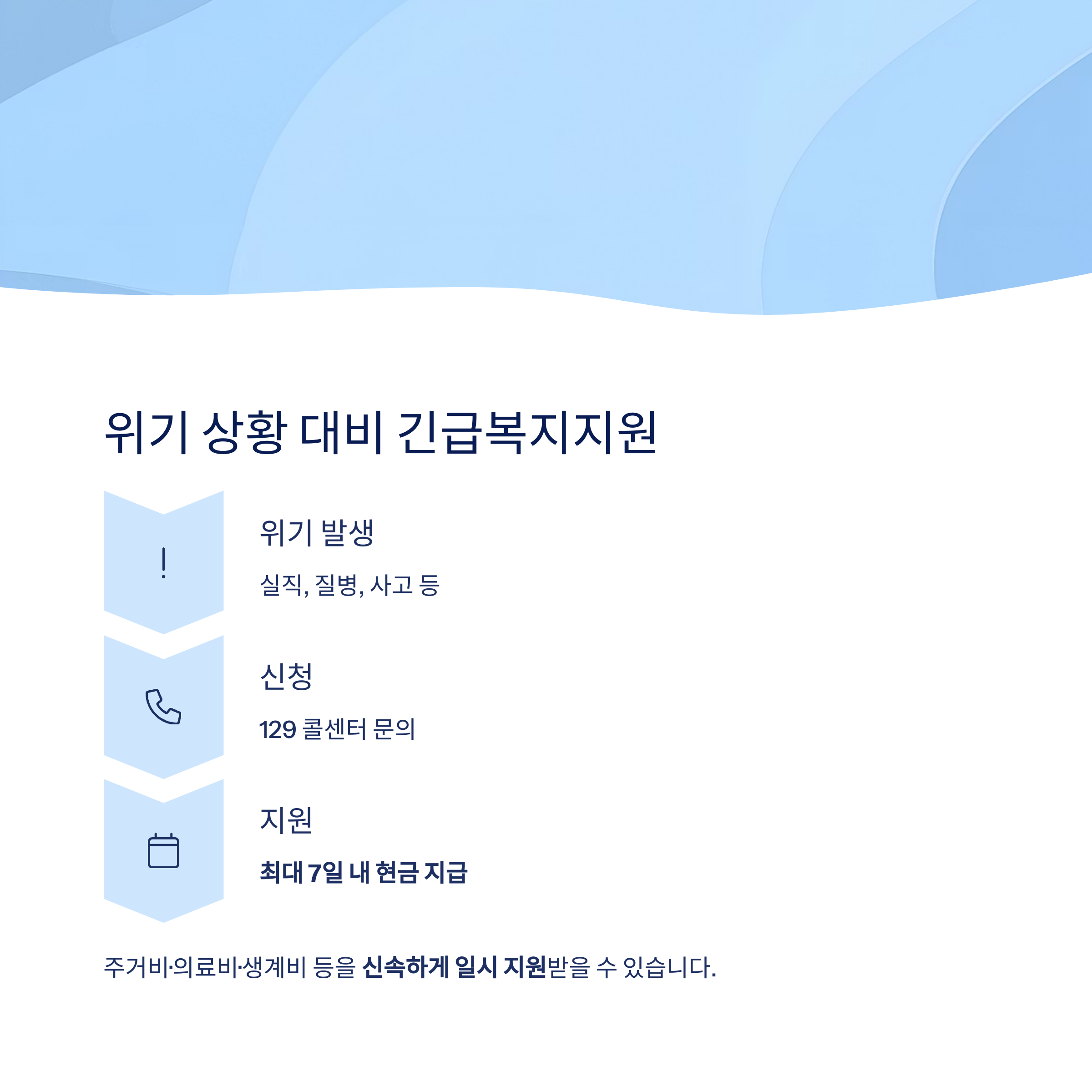 주거비·의료비·생계비 등을 신속하게 일시 지원받을 수 있는 제도입니다.