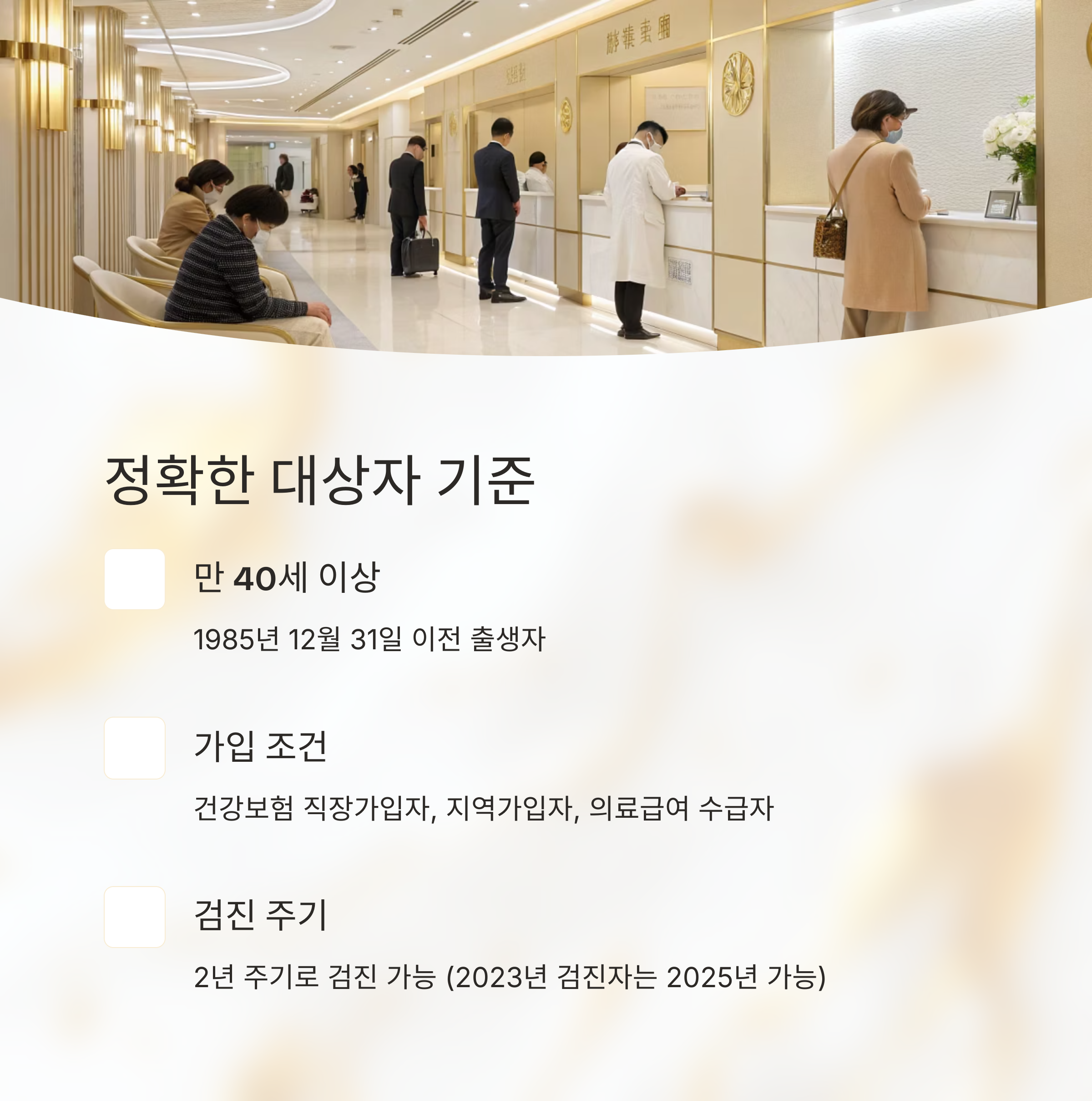 핵심: 대상자는 2년 주기로 검진 받을 수 있으므로, 2023년에 검진을 받았다면 2025년에 다시 가능합니다.