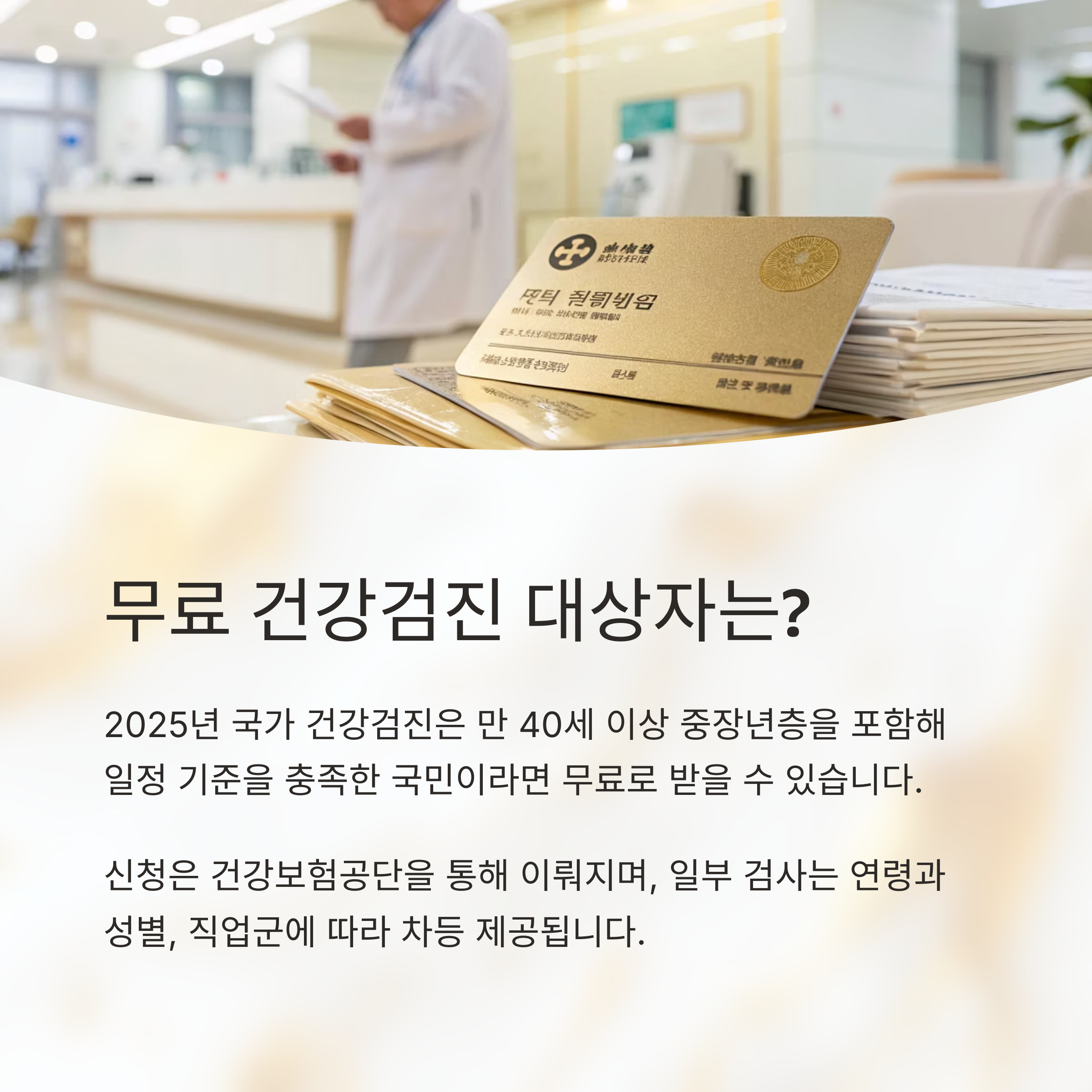 2025년 국가 건강검진은 만 40세 이상 중장년층을 포함해 일정 기준을 충족한 국민이라면 무료로 받을 수 있습니다. 신청은 건강보험공단을 통해 이뤄지며, 일부 검사는 연령과 성별, 직업군에 따라 차등 제공됩니다. 아래에서 대상 조건과 구체적 신청 방법을 하나씩 살펴보겠습니다.