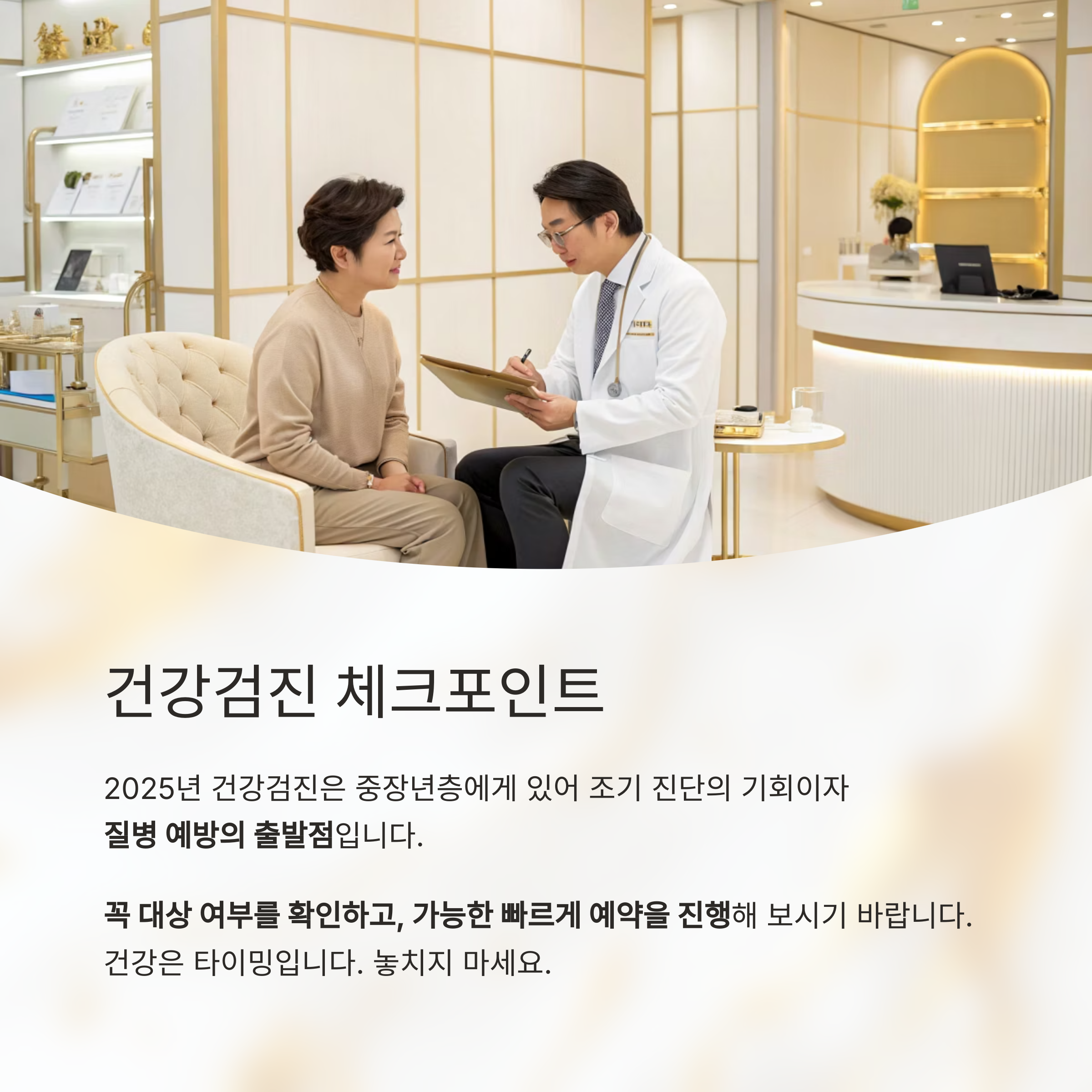 건강은 타이밍입니다. 놓치지 마세요.