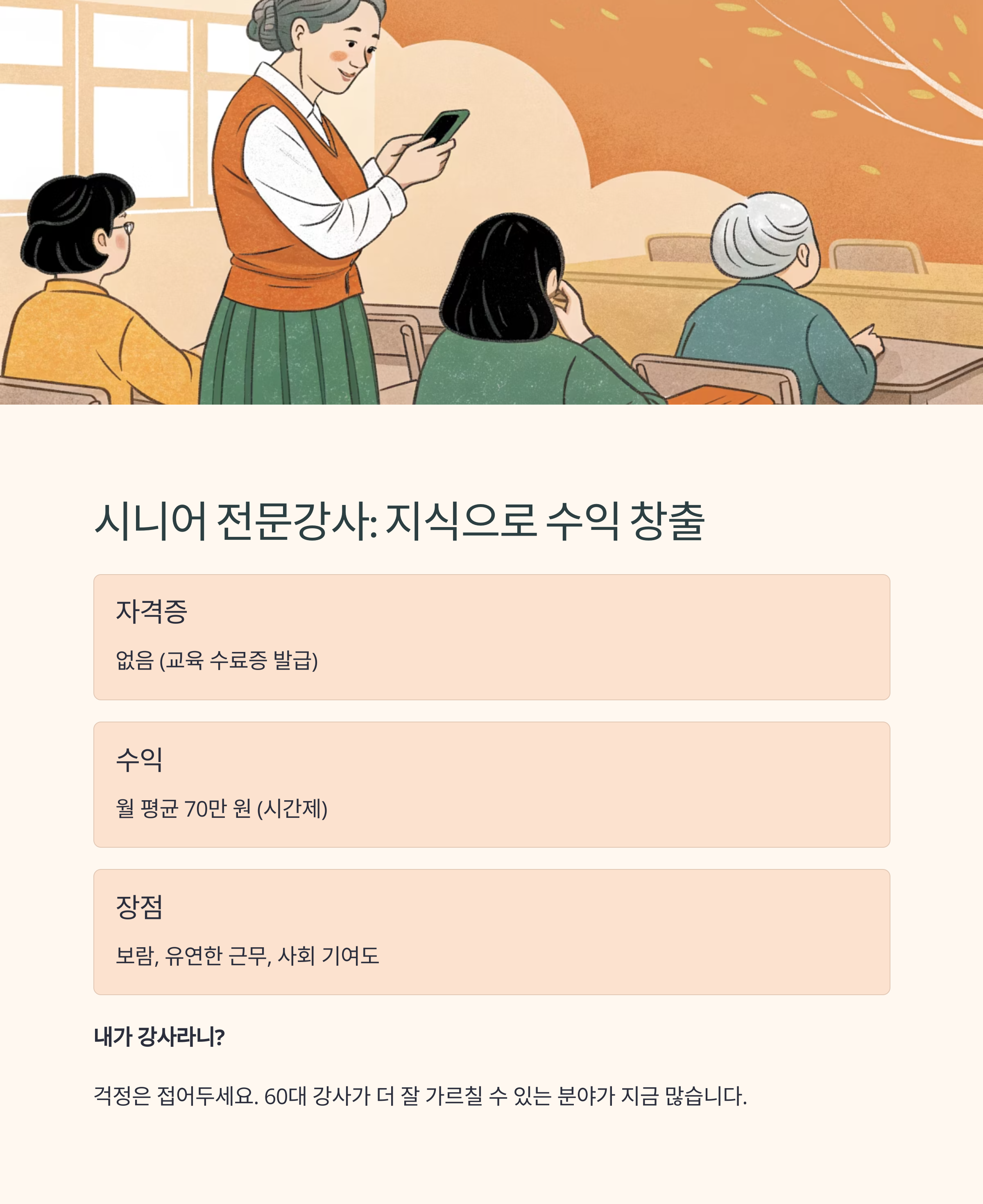 🧑‍🏫 2. 시니어 전문강사 활동: 지식으로 수익을 만드는 방법