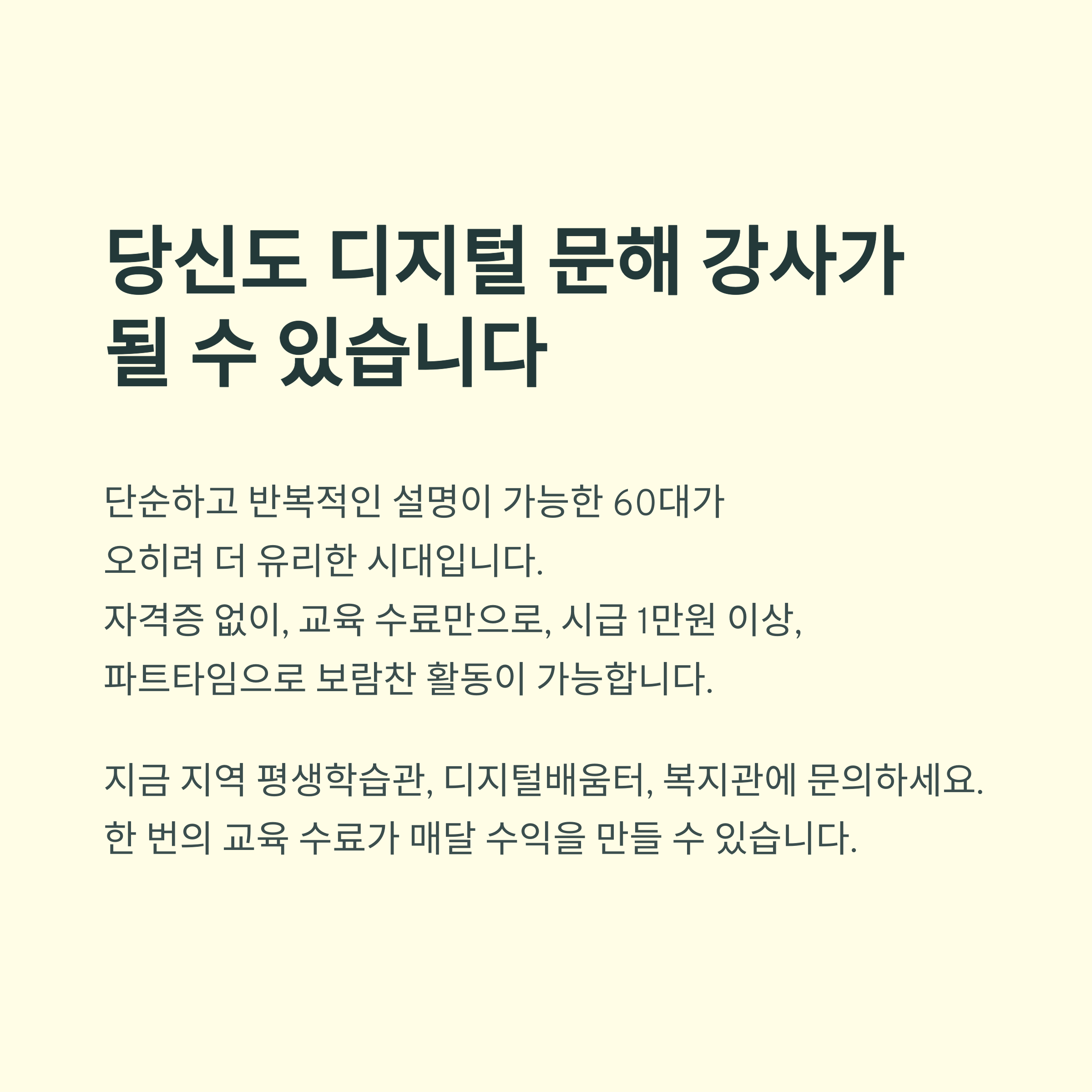 📌 마무리: 디지털 문해 강사는 ‘자격 없는 강사 직업’의 현실적인 대안입니다