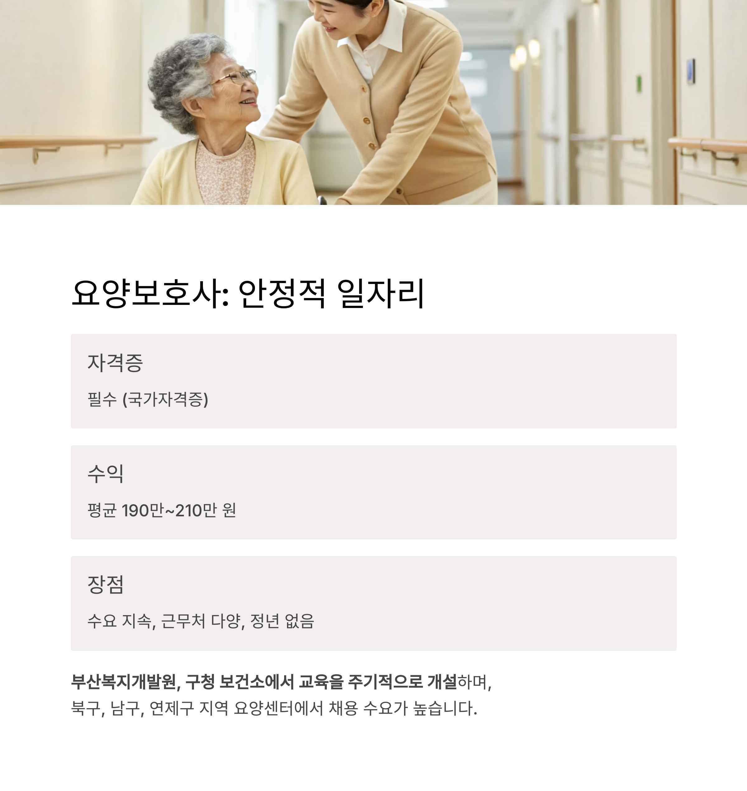 🧑‍⚕️ 2. 요양보호사: 부산복지개발원 연계 교육으로 자격증 준비