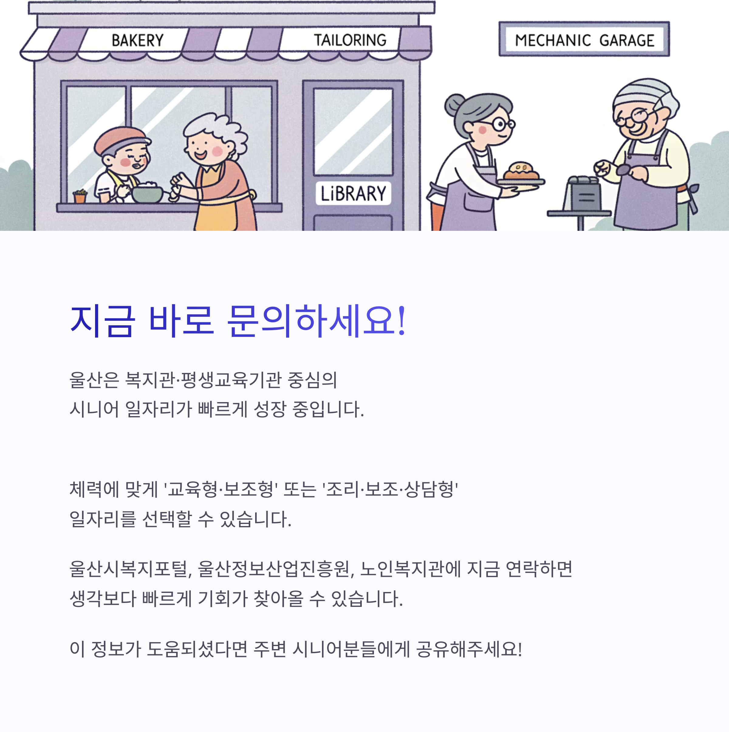 이번 글에서는 2025년 기준 울산 지역에서 실제 가능한 60대 이상 직업 3가지를