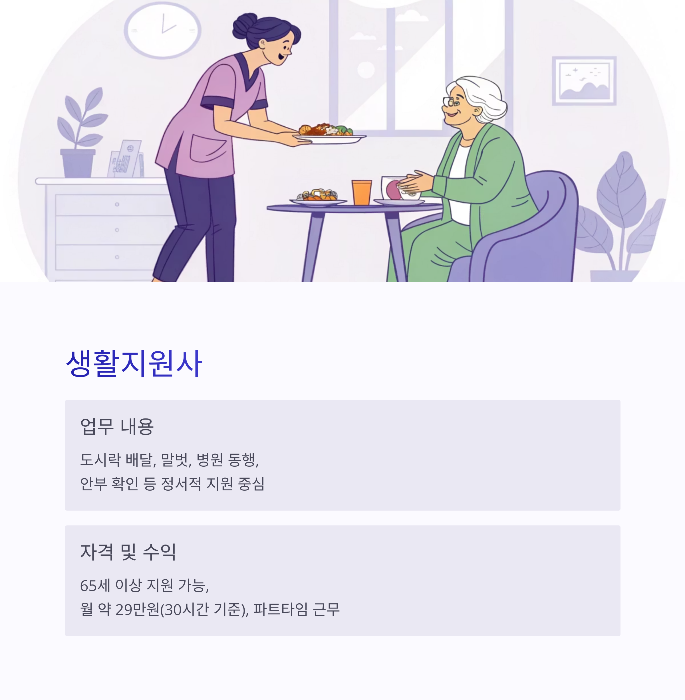 🧹 2. 생활지원사: 어르신 돌봄 중심, 체력 부담 낮은 직종