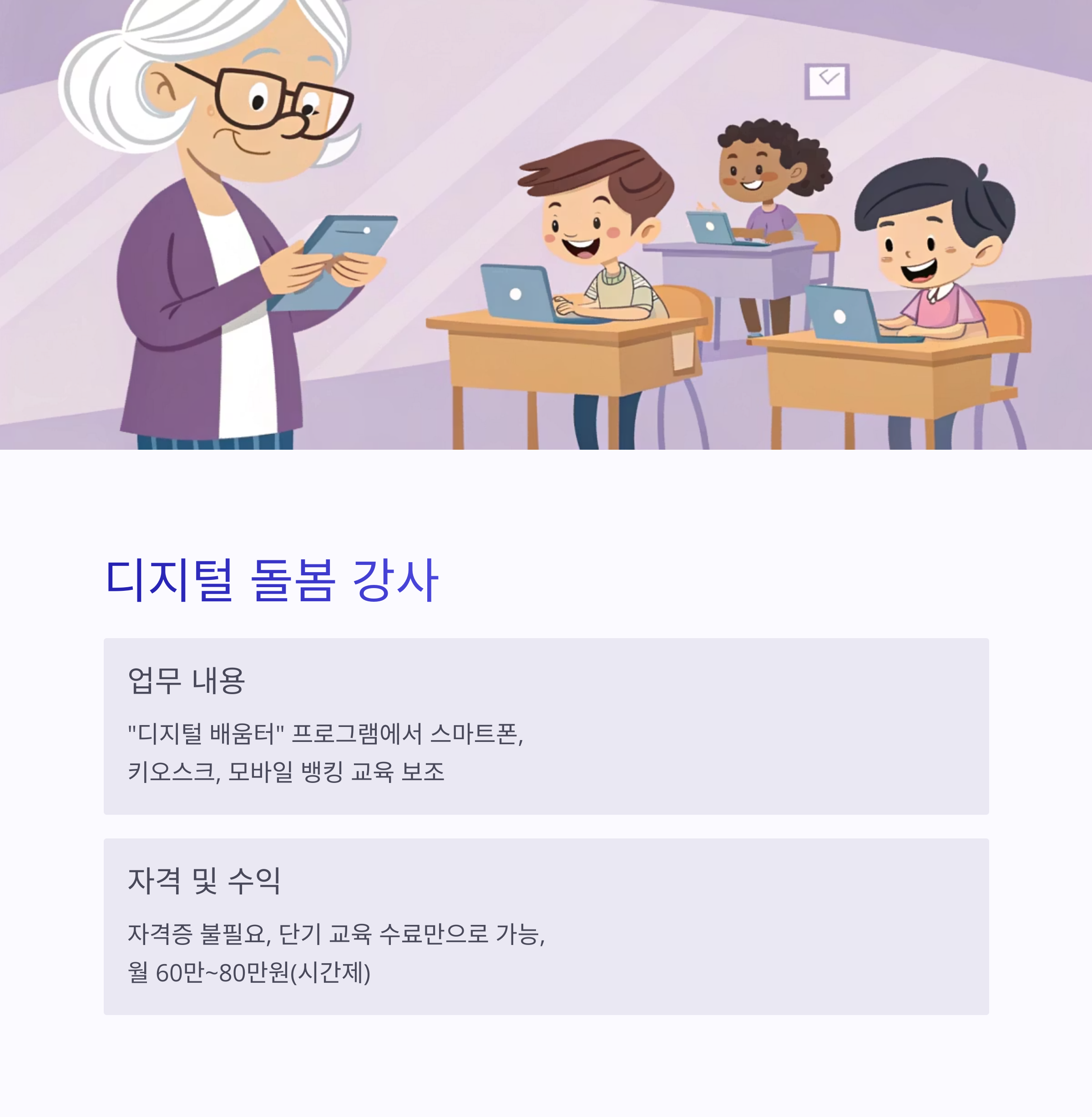 🧑🏫 1. 디지털 돌봄 강사: 짧은 교육으로 지역 복지관 활동 가능