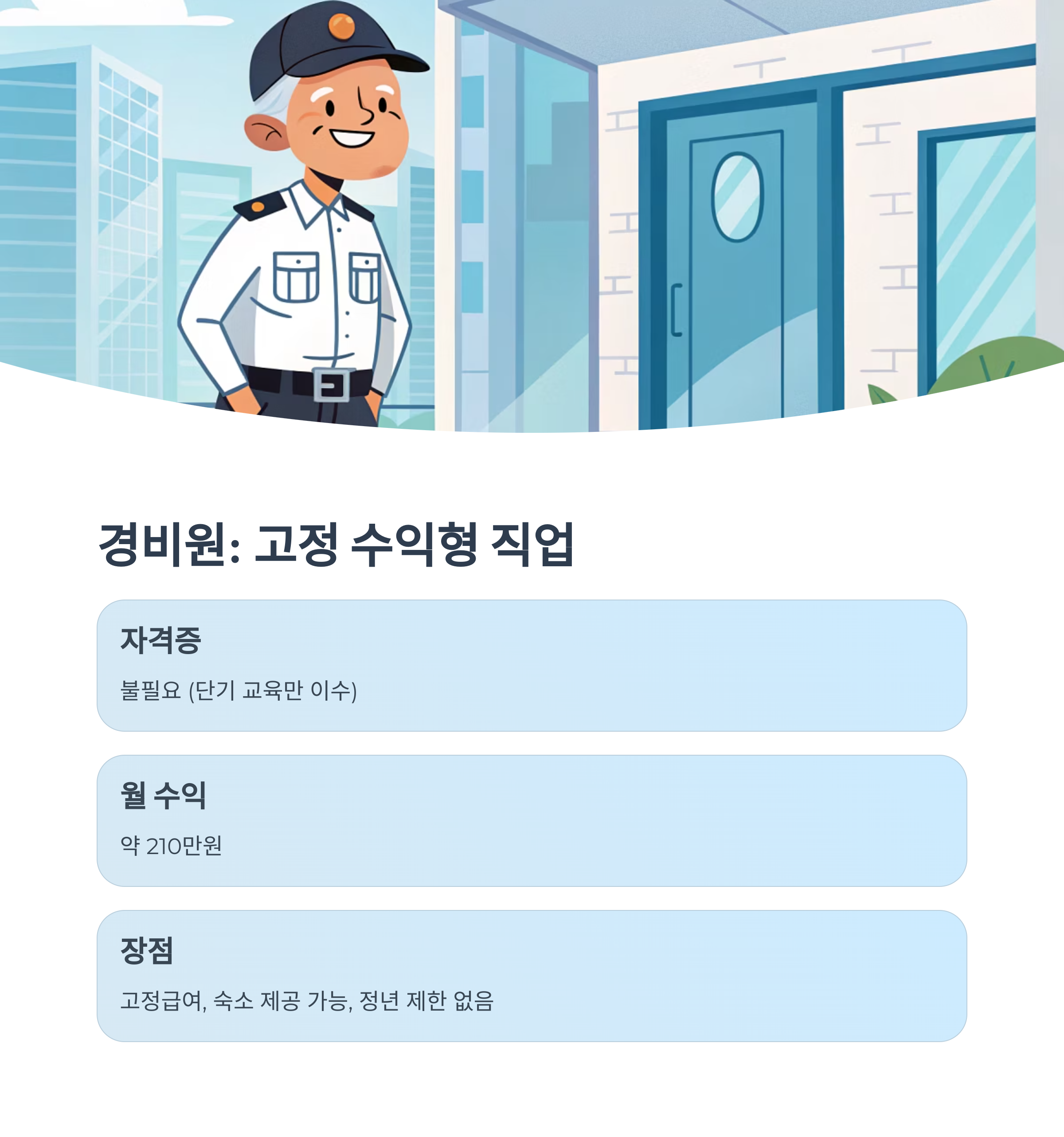 👮 1. 경비원: 자격증 없이 입문 가능한 고정 수익형 직업