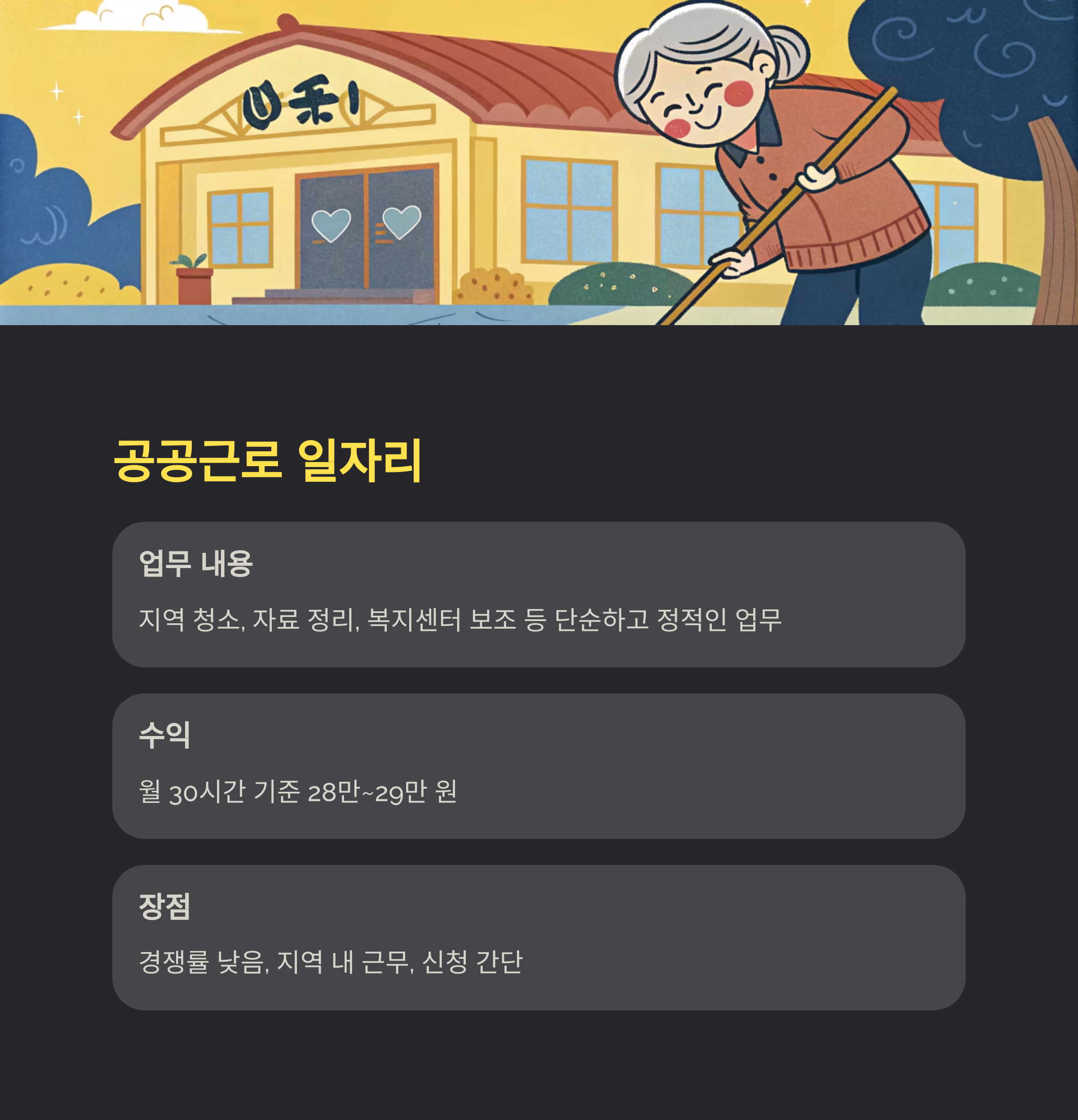 🧹 1. 공공근로 일자리: 행정복지센터 중심의 단기 고정근무