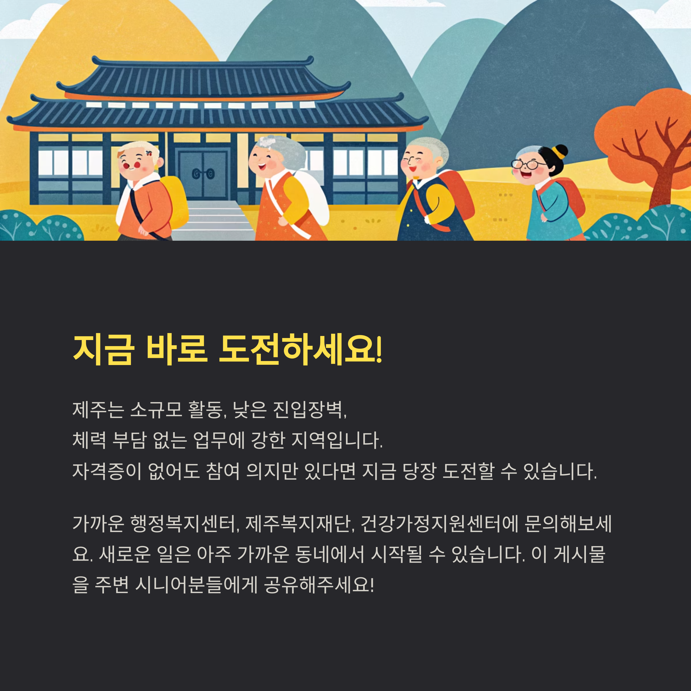 📌 마무리: 제주도 시니어 일자리는 '지역 친화형 + 실속형'이 강점입니다