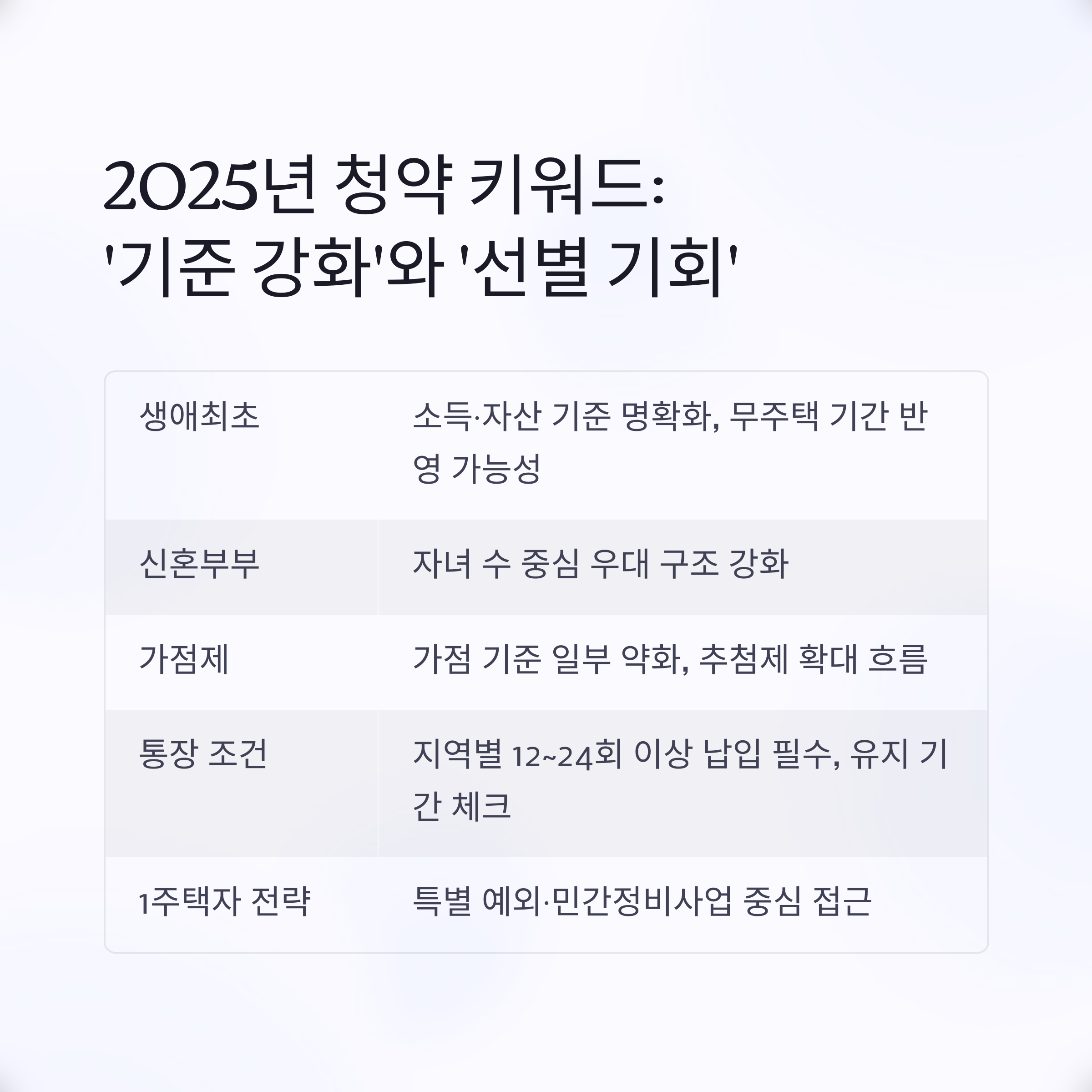 정리: 2025년 청약 키워드는 ‘기준 강화’와 ‘선별 기회’