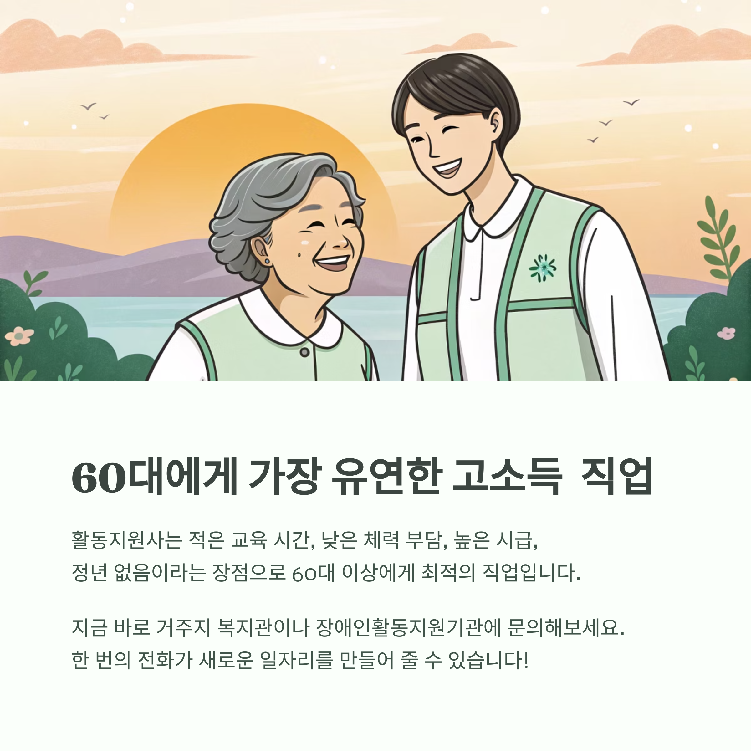 📌 마무리: 활동지원사는 60대에게 가장 유연한 고소득 복지 직업입니다