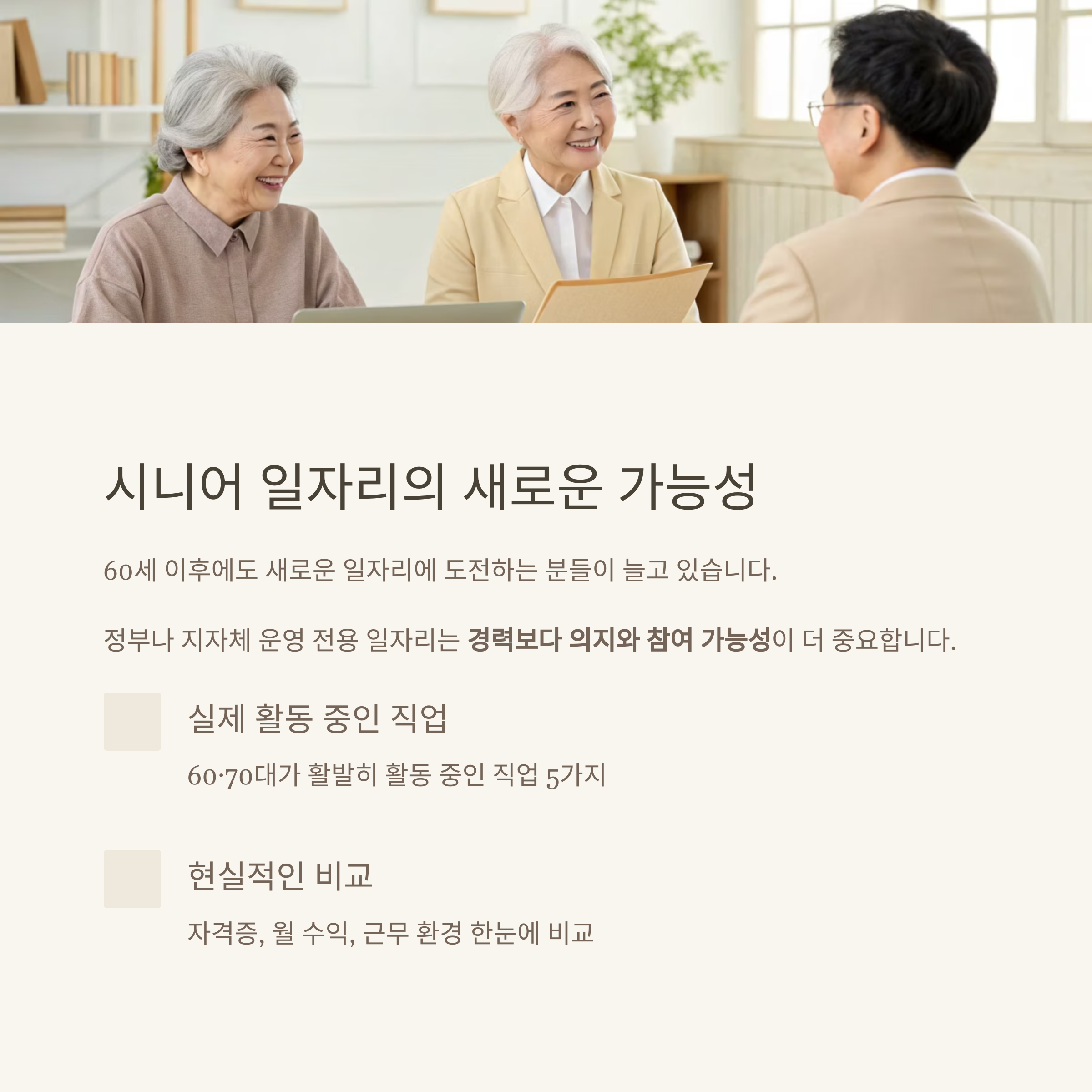 2025 60대부터 가능한 일자리 TOP 5: 자격증·수익 비교 완벽 정리