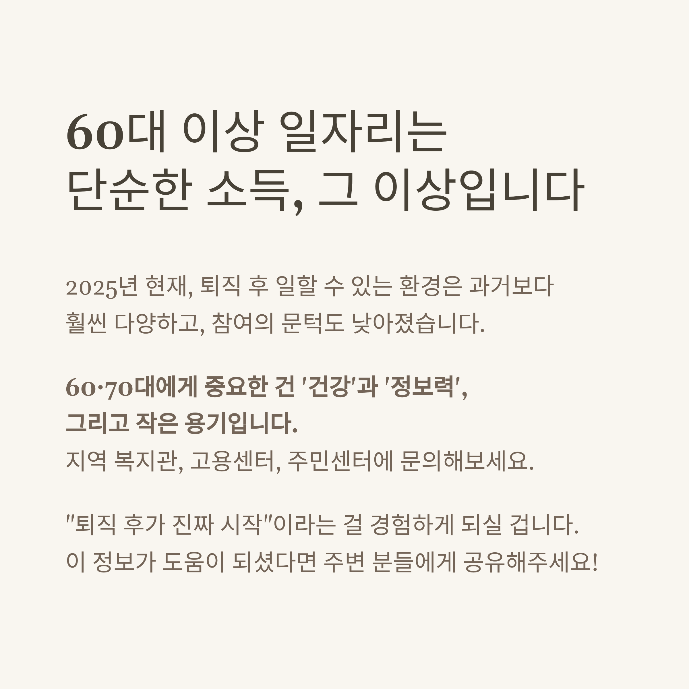📌 마무리: 시니어 일자리는 단순한 소득 그 이상입니다