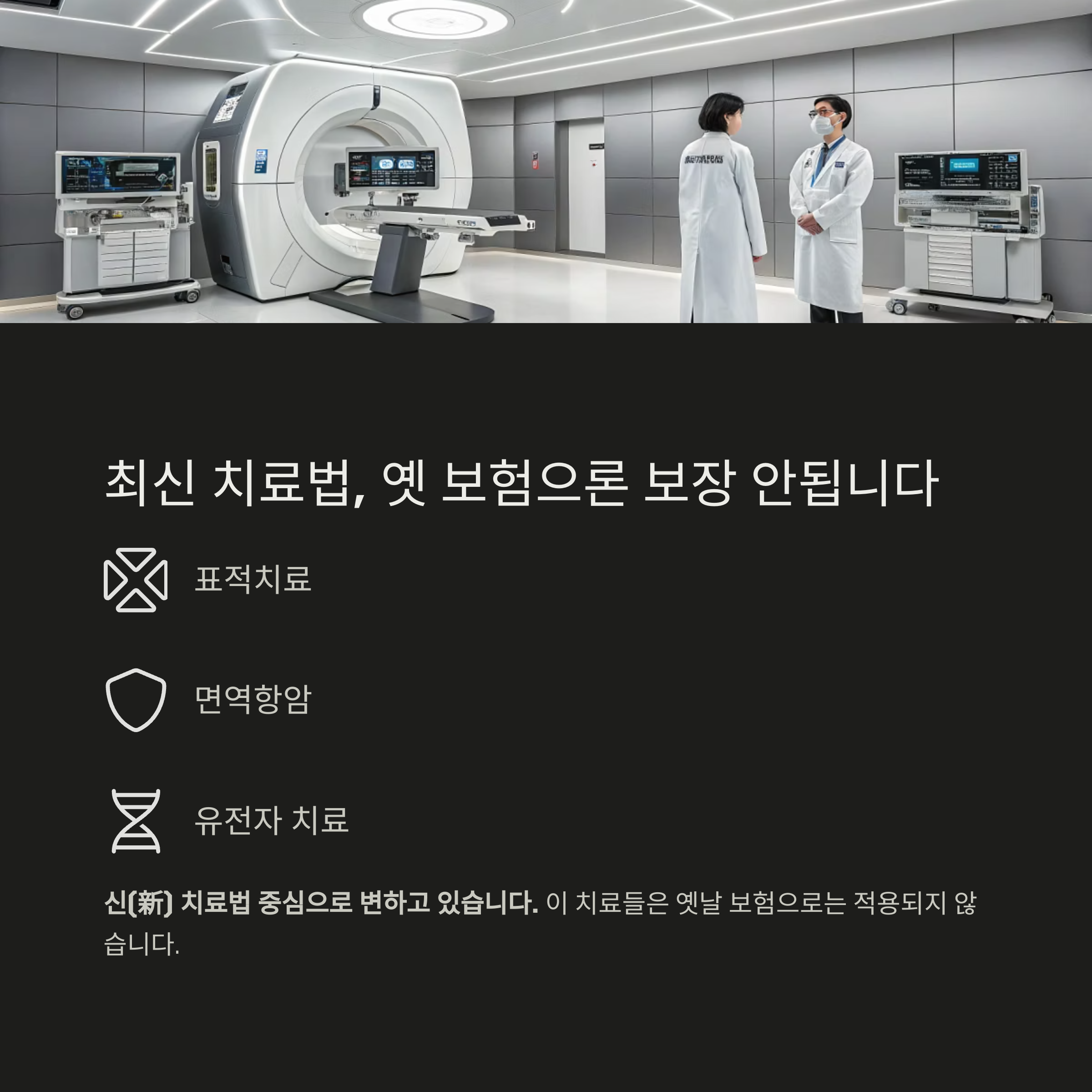 예전 보험으로는 이러한 고위험 암의 최신 치료비를 감당하기 어렵습니다.