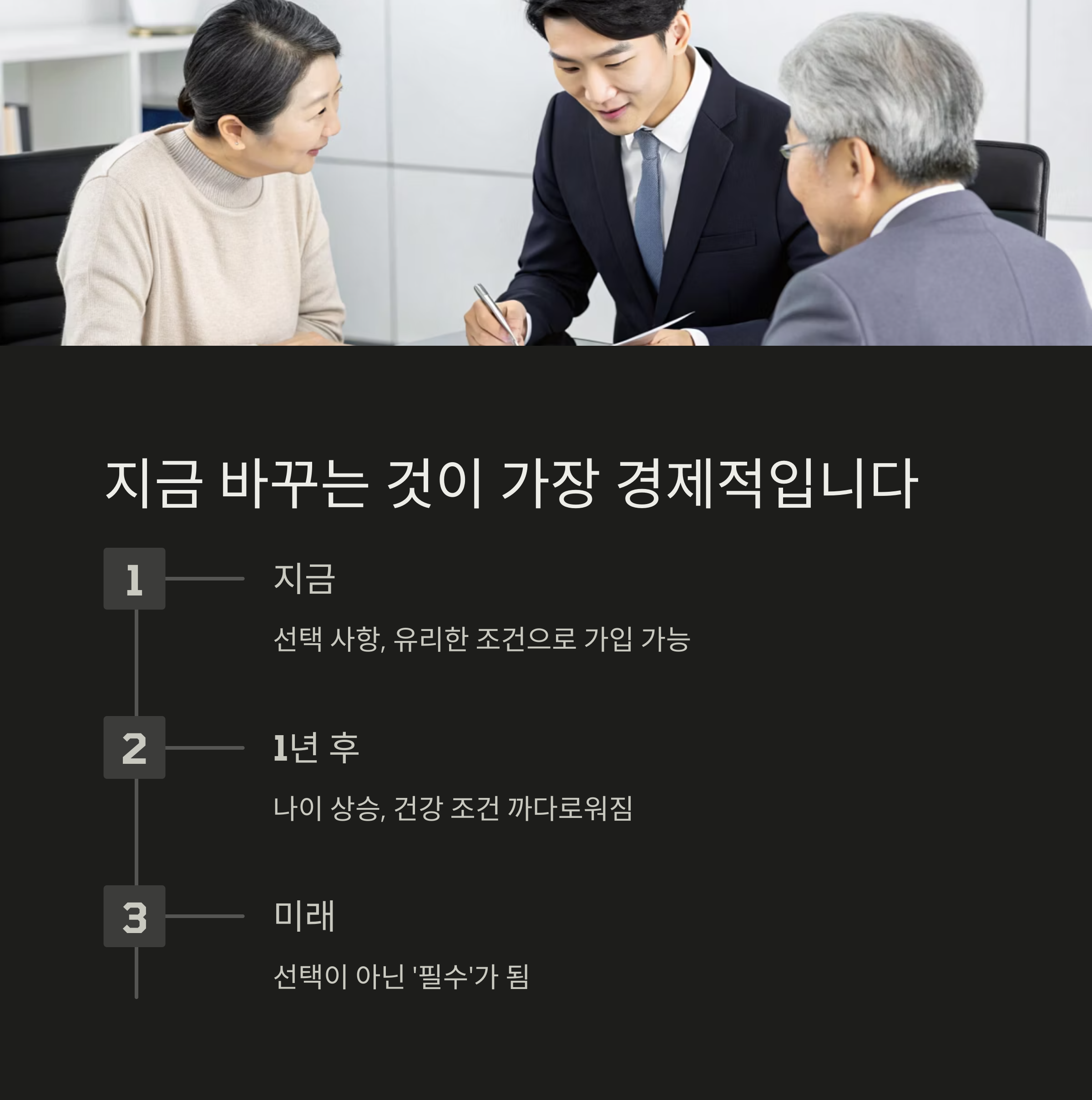 보장 범위는 넓히고, 보험료는 낮게 유지할 수 있는 마지막 기회입니다.