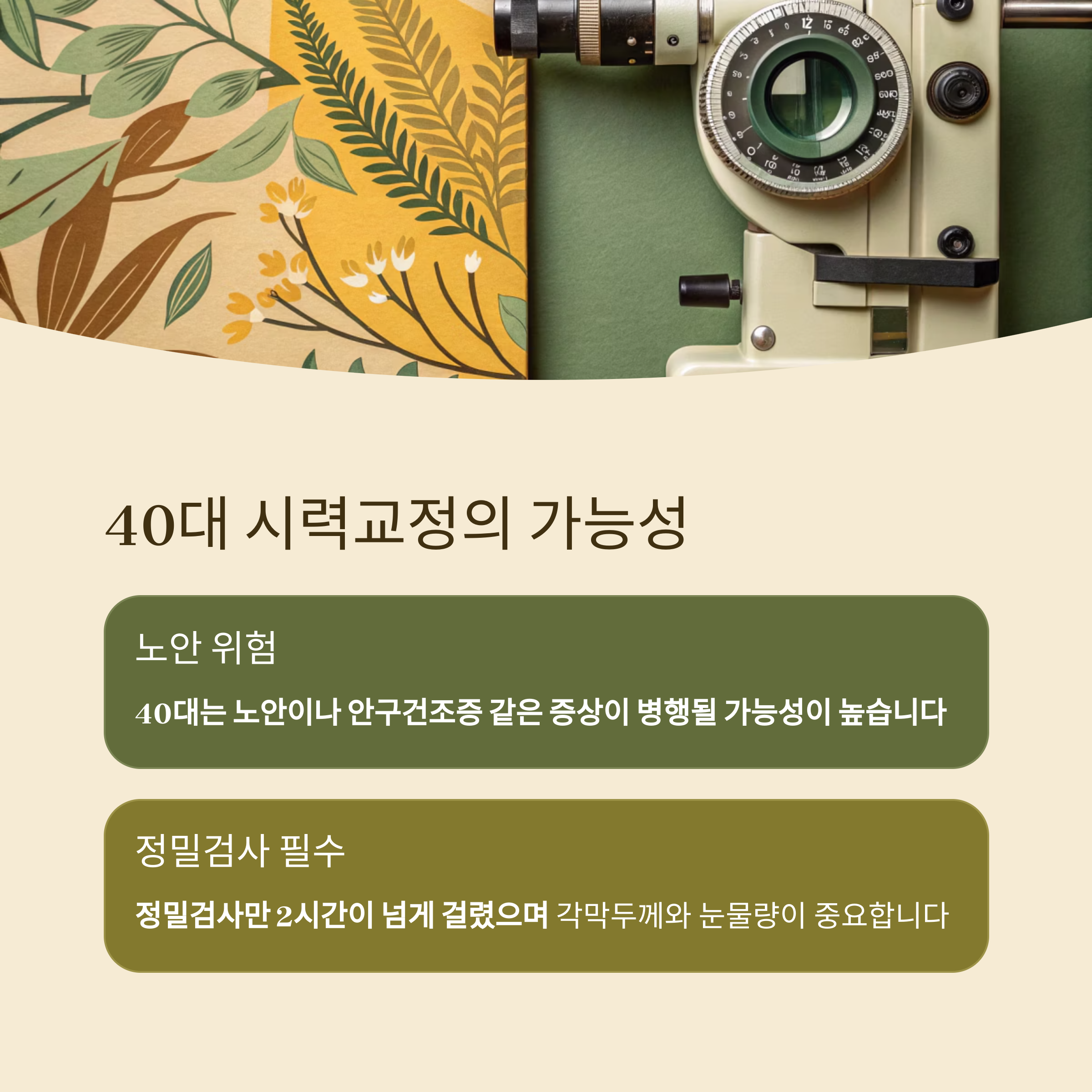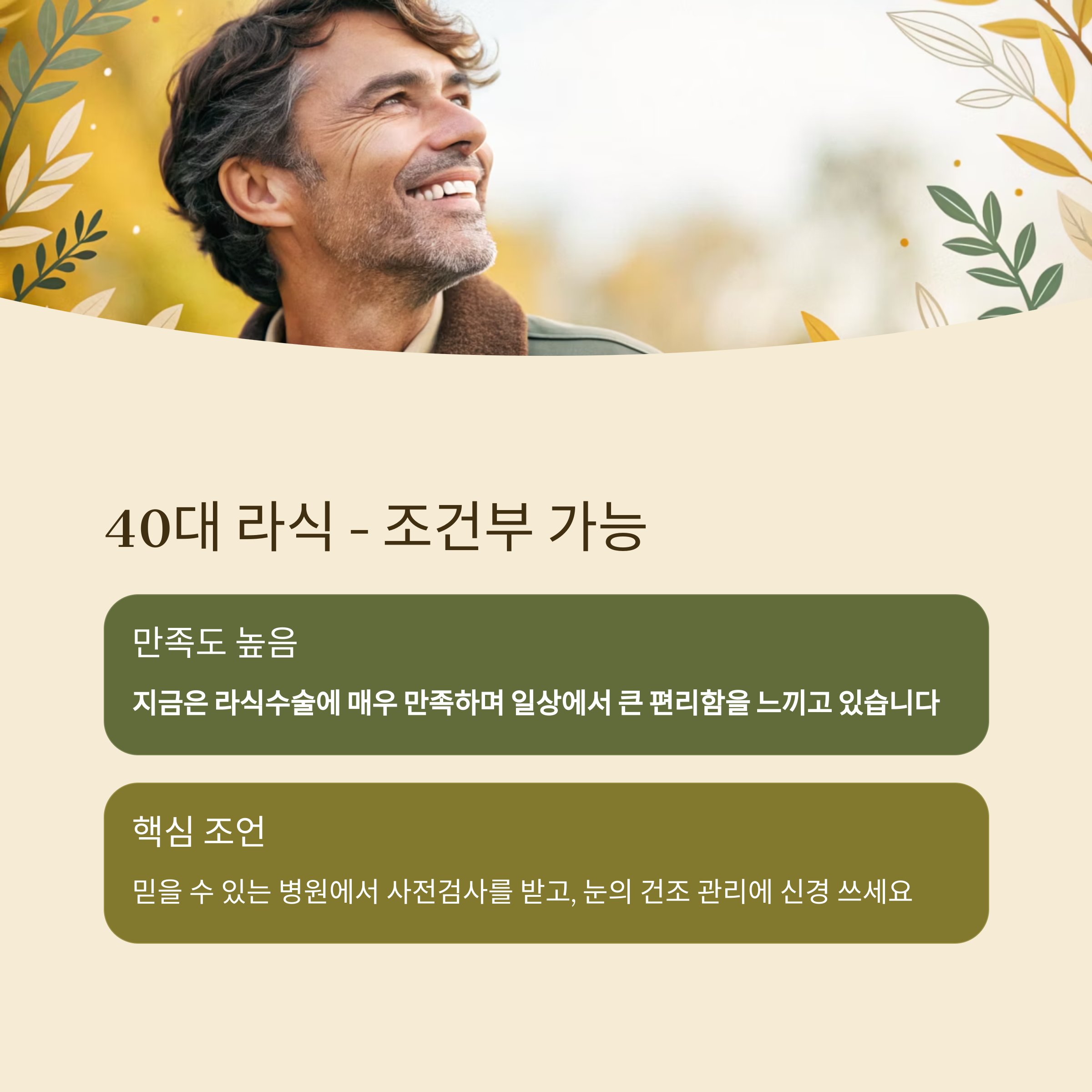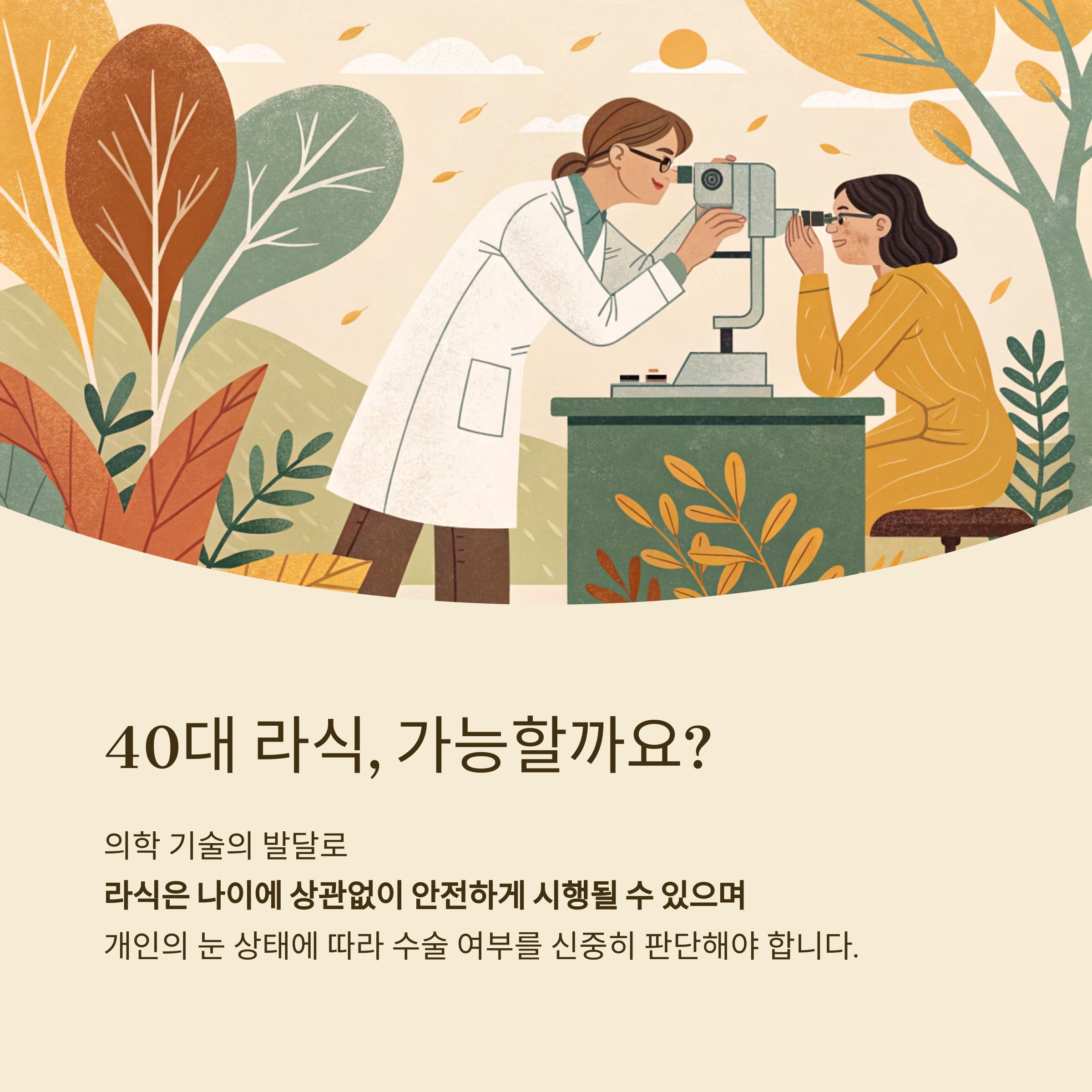 40대는 노안이 시작되기 전후의 시기라 라식수술에 대한 고민이 깊어집니다