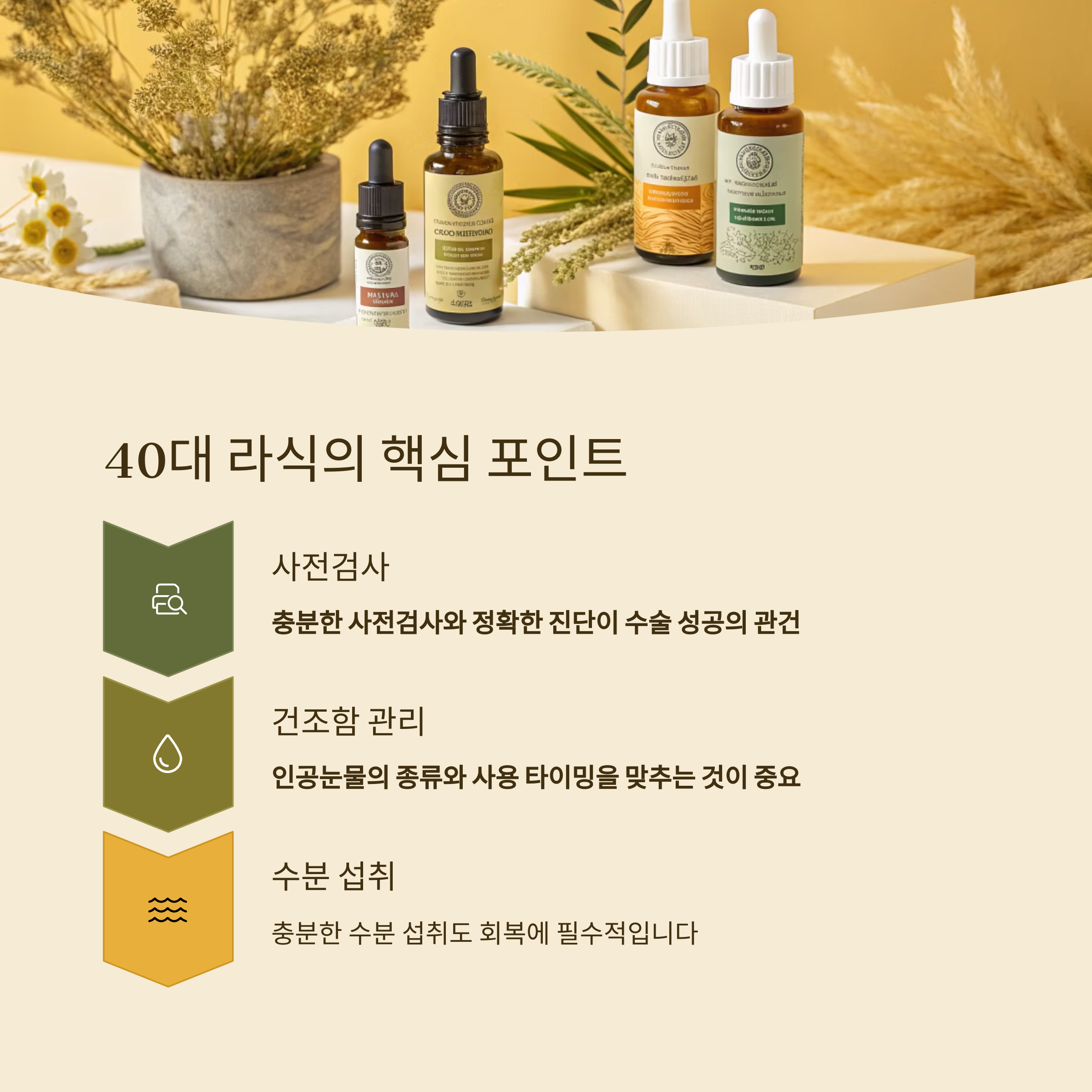 40대 라식의 핵심은 '사전검사'와 '건조함 관리'