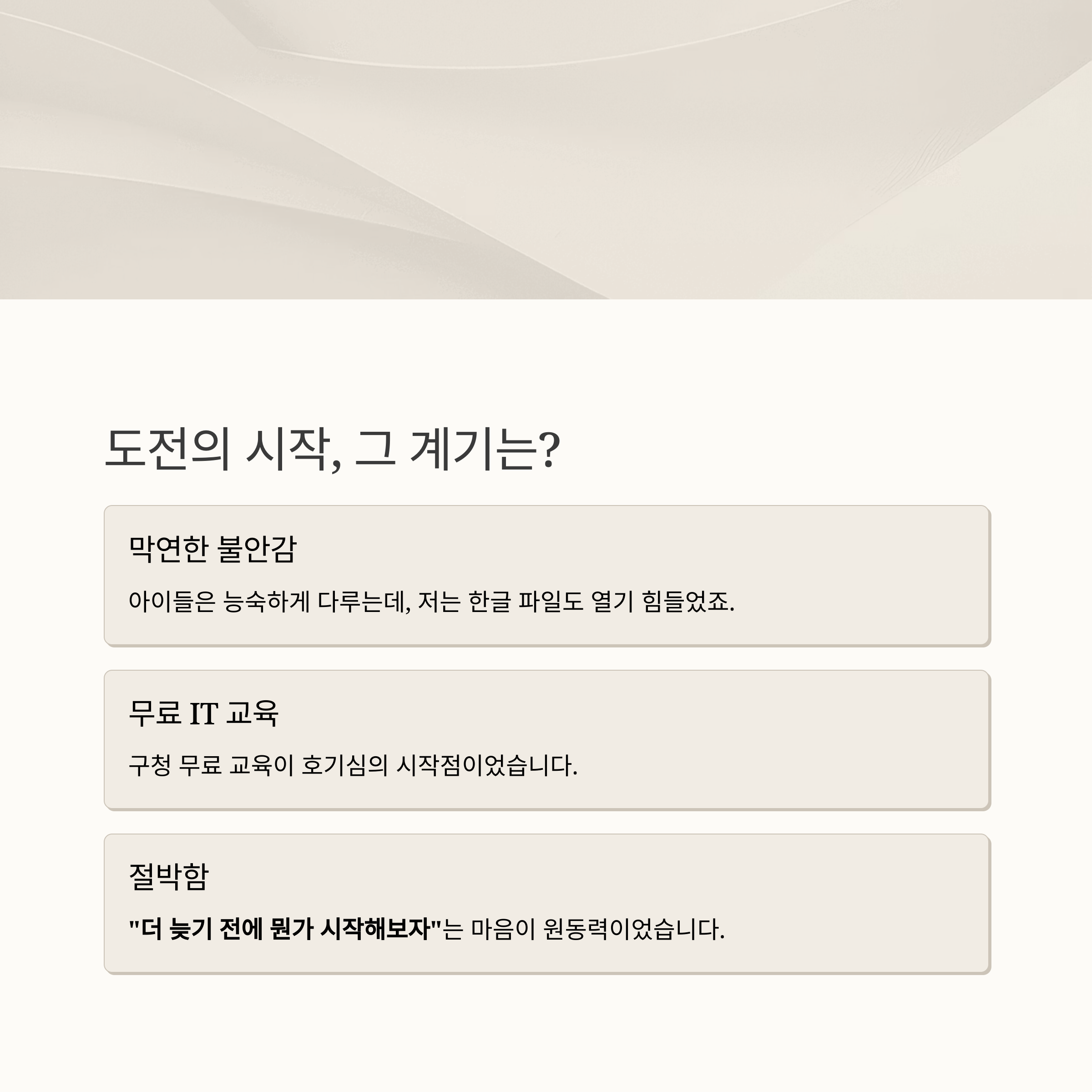 컴퓨터 기초도 부족했던 이들에게 현실적 동기와 구체적인 팁이 될 이야기입니다.