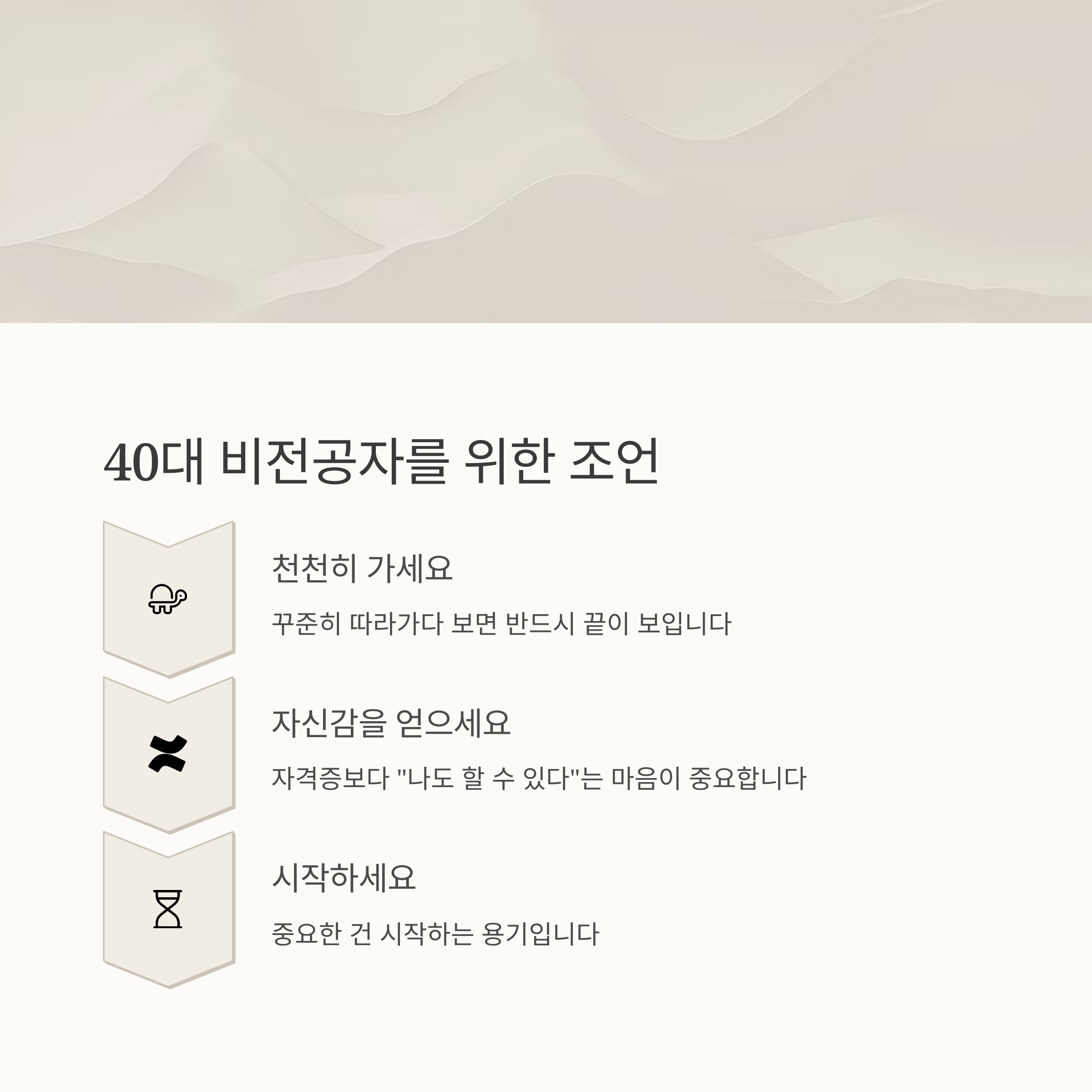 40대에게 적합했고, 출제 패턴도 단순해 독학도 충분히 가능했습니다.