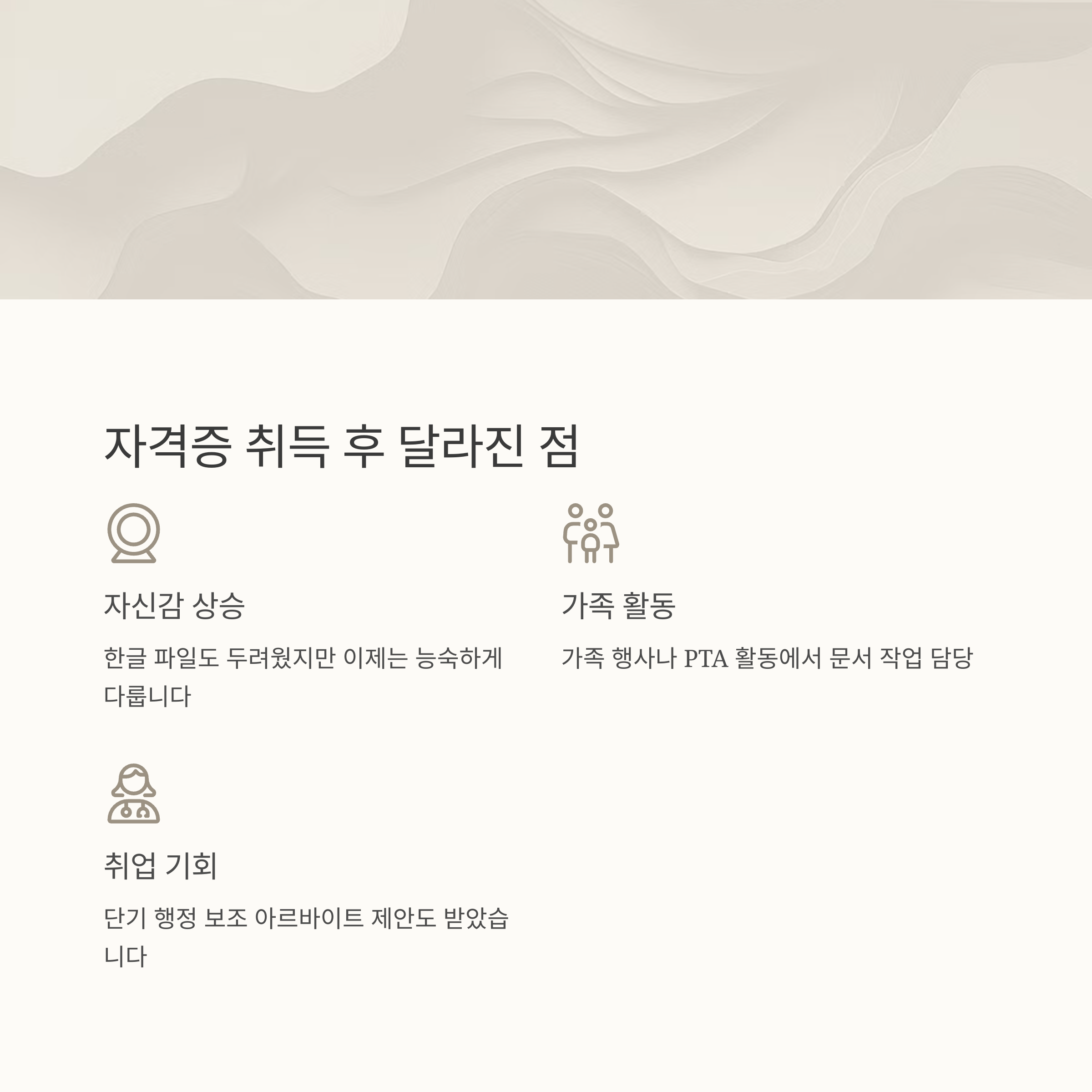 지금은 가족 행사나 PTA 활동에서 문서 작업도 능숙하게 하게 됐습니다.
