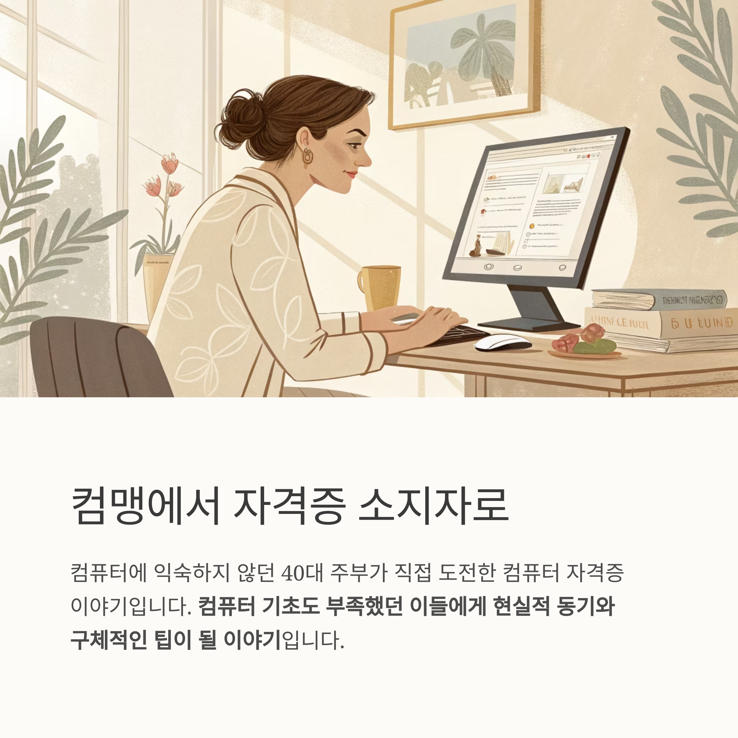 컴퓨터에 익숙하지 않던 40대 주부가 직접 도전한 컴퓨터 자격증 이야기입니다.